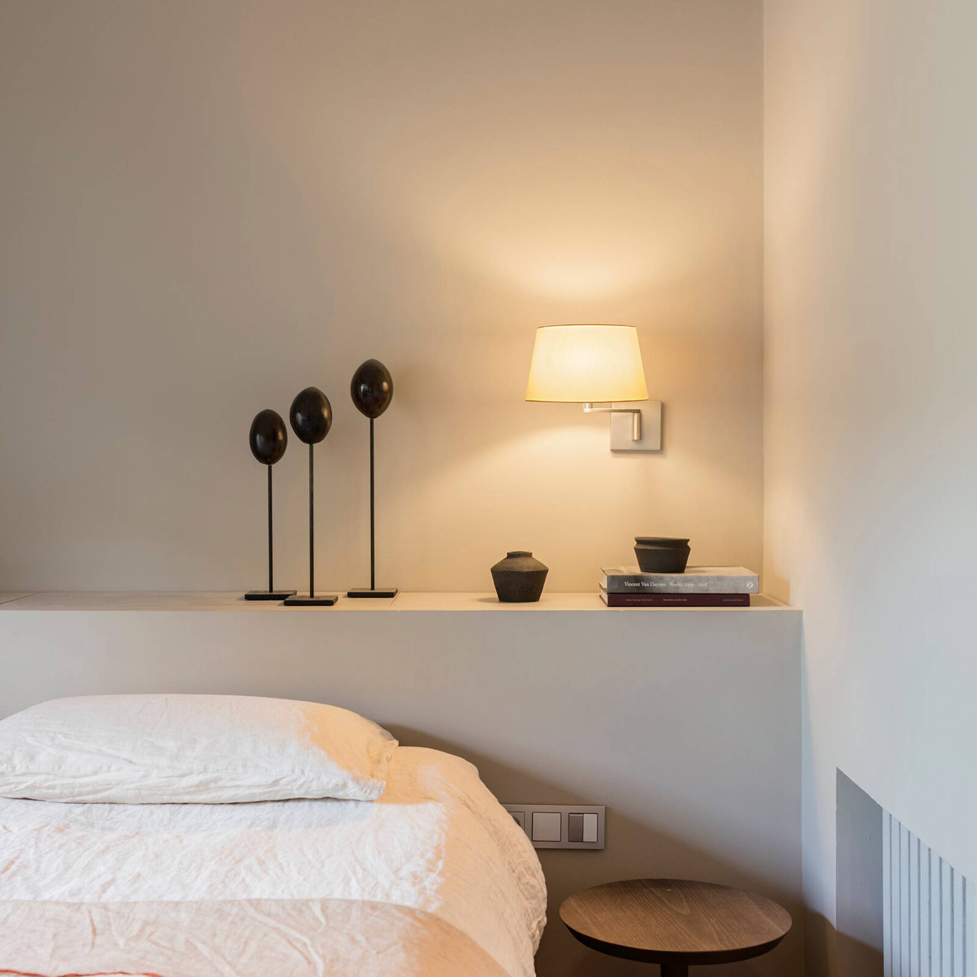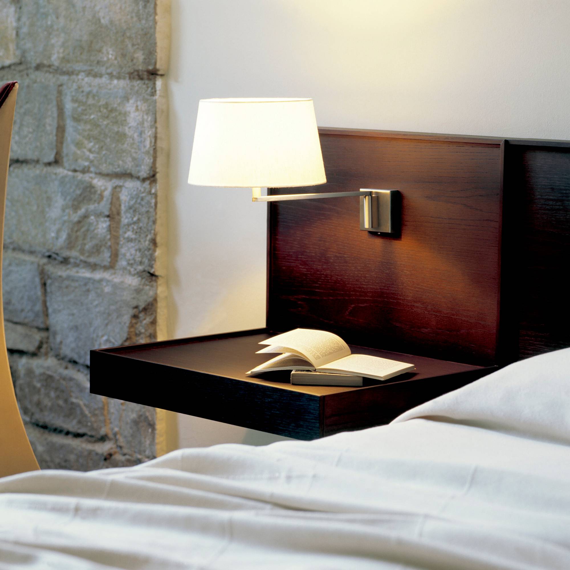 Designed by Miguel Milá in the mid-1960s to pay tribute to George Hansen’s earlier swing-arm classic, Americana's wall version features a simplified swivel that enables the shade’s horizontal rotation from the head of the wall bracket. The satin-nickel structure's arm can be easily moved closer or further away, with its clean white lampshade diffusing the updated LED illumination. Elegantly functional and timeless in appearance, it's a prime addition next to a reading chair or at bedside.