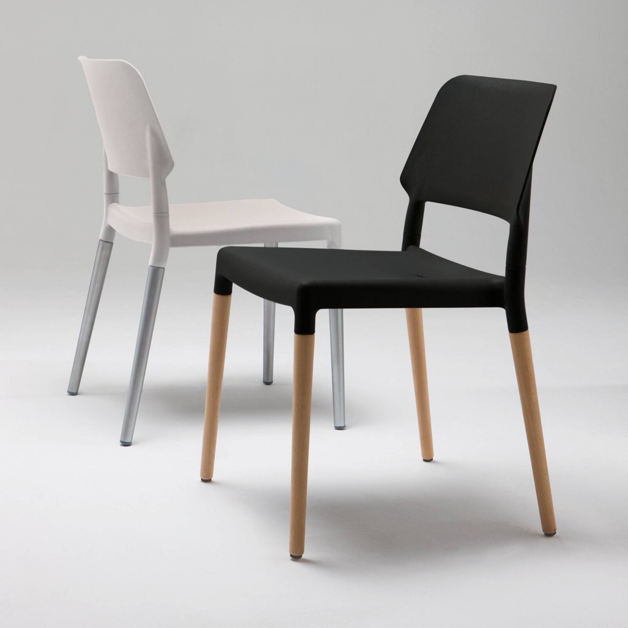 Lagranja Design's Gerard Sanmartí and Gabriele Schiavon originally conceived this lightweight, sustainable and easily stackable chair for Santa & Cole’s own offices. Located in Belloch Parc just outside Barcelona, the setting suggested an outdoor version, with the seat and backrest in an weatherproof mixture of recycled polypropylene and wood fibers. In a versatile off-white hue, the refined seating features legs in matte-finish anodized aluminum.
