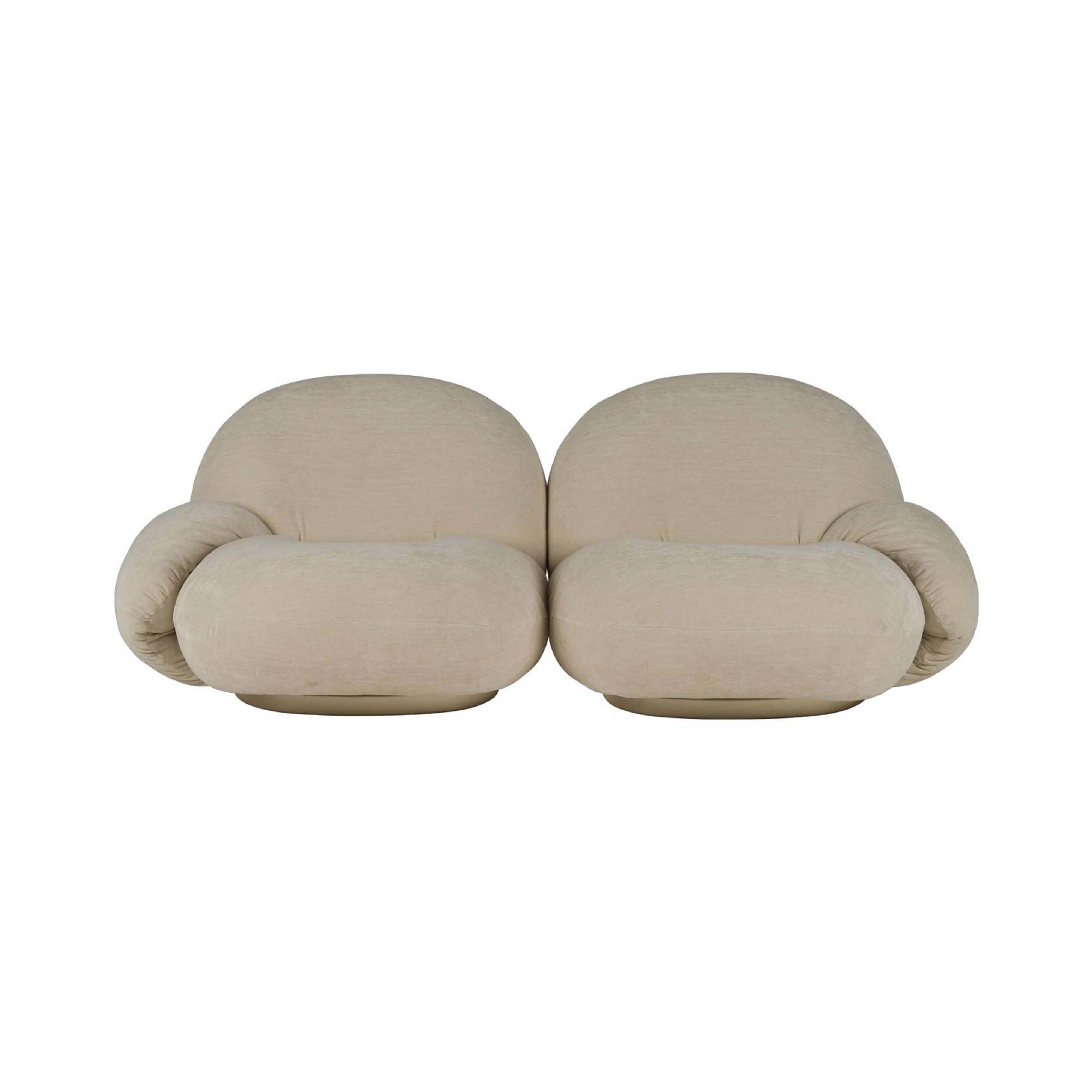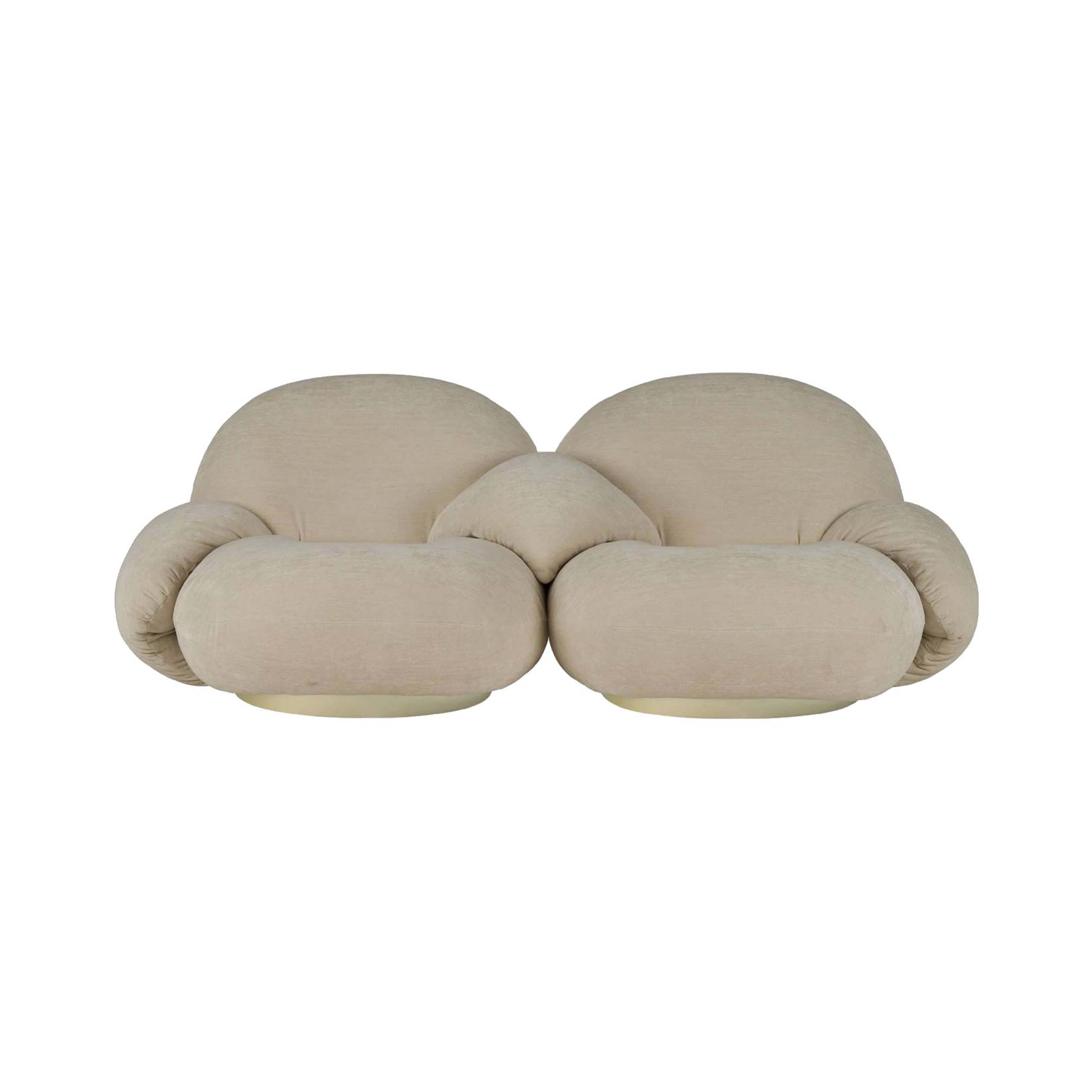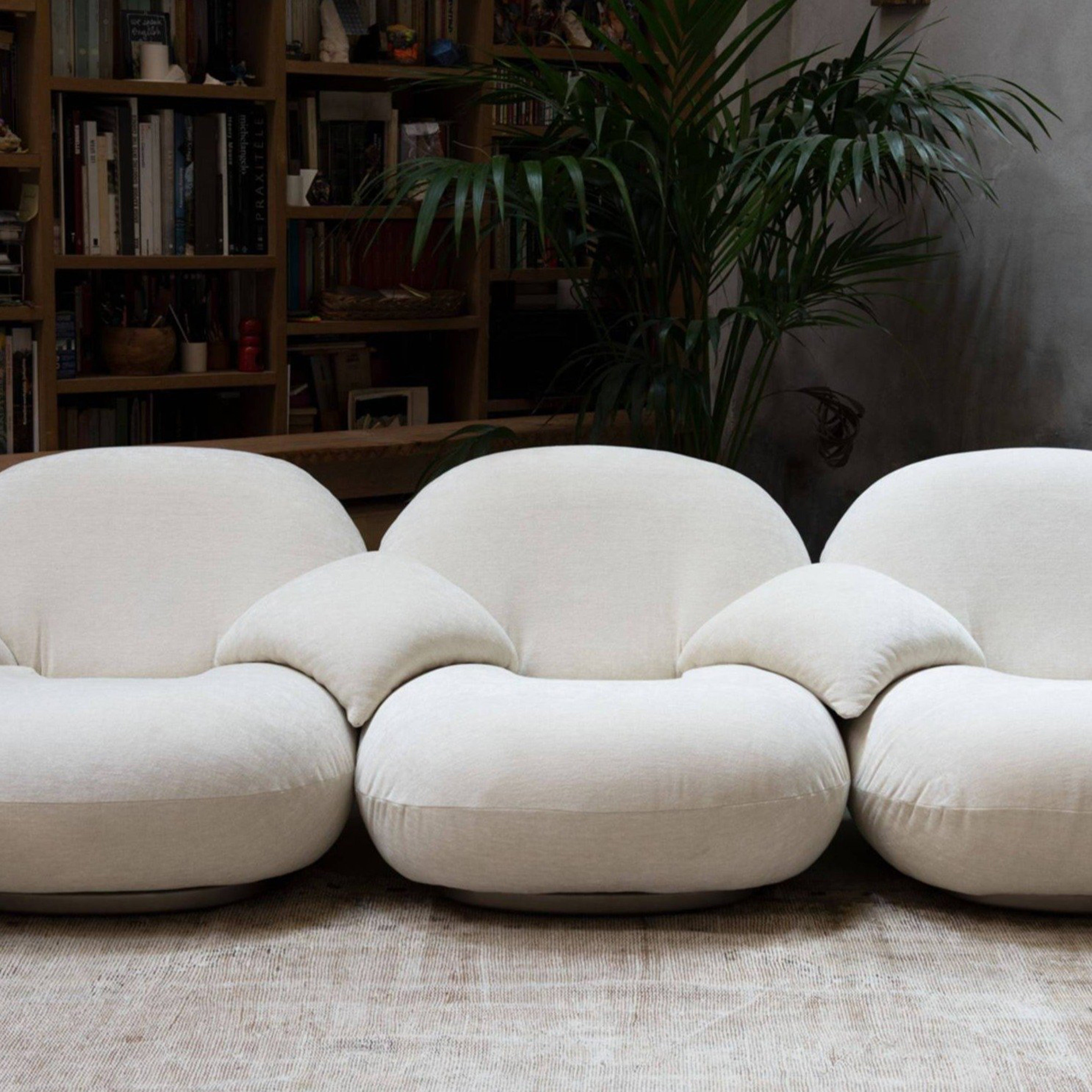 Likened to “sitting on clouds” by its creator Pierre Paulin, the Pacha seating collection includes an armless center and left and right side modules for creating a custom arrangement. The designer’s 1975 concept was ahead of its time but the comfort of its plump curves and lounge-like, low-to-the-floor stance have proved enduring. Reintroduced by Gubi, Pacha displays its considerable charms anew in an extensive range of customized upholstery selections.