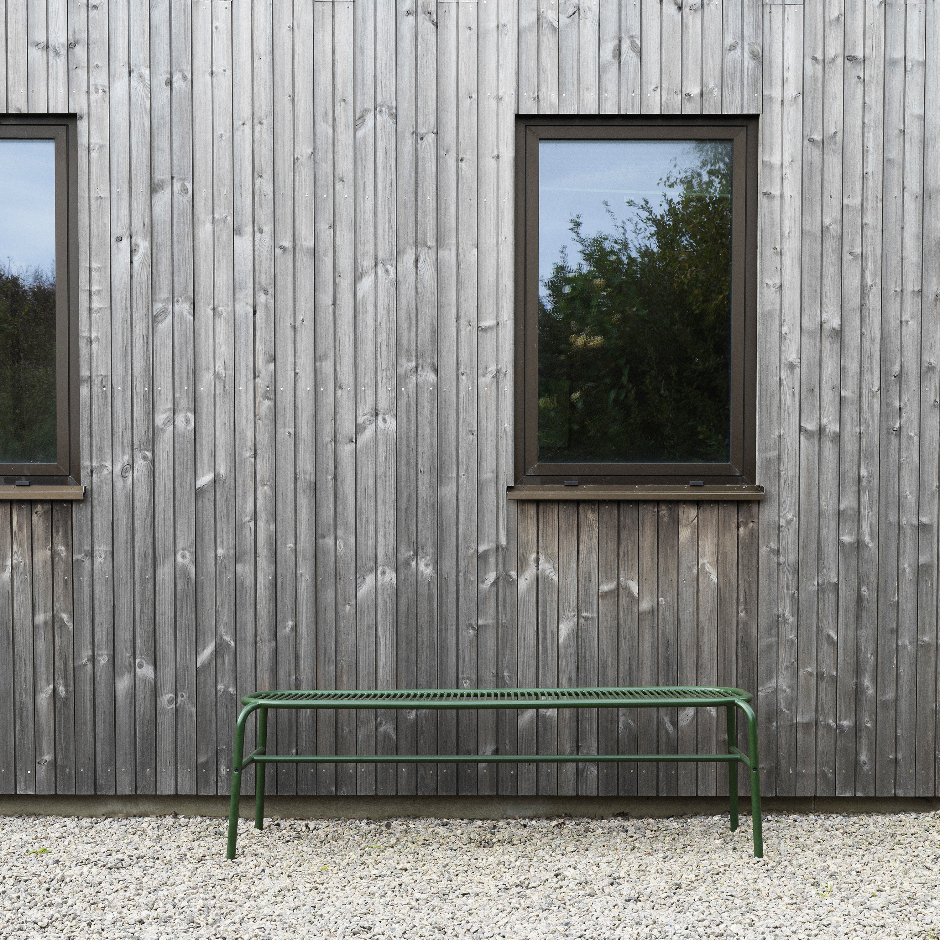 The Vig Stacking Bench is a versatile outdoor seating option crafted from durable double powder-coated steel, making it ideal for extended outdoor use while maintaining its sleek appearance. Its stackable design makes it highly functional for flexible seating arrangements. Available in colors black, grey, and dark green, the Vig collection offers a cohesive collection of outdoor furniture.