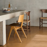 The Stacking Chair is made from laminated beech or walnut veneer with a solid beech frame, it offers a natural, warm look. The A-shaped legs provide stability while maintaining a sleek silhouette. Designed for convenience, the chair can be stacked up to five units, making it ideal for both residential and commercial use. It works well as dining or office seating and pairs effortlessly with other pieces from the Daystak collection. Plastic gliders are included to protect floors and ensure easy movement.