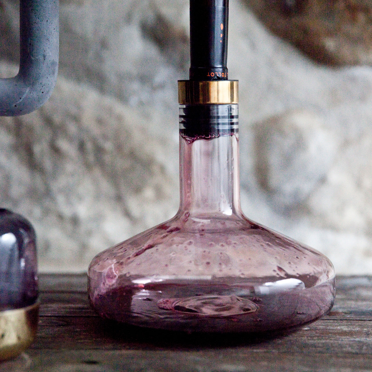 Norm Architects' hand-blown glass decanter gets a luxe variation topped by a gleaming brass cap with the same simple action that aerates wine with the flip of the bottle when set mouth-to-mouth with Wine Breather. Aeration is cut to 2 minutes as the vino washes down the side of the decanter for serving or reverse the flow and pour the vino back into the bottle. Ideal for young wines under 3 years or use it as a conventional decanter for vintages 6 years or older that contain sediment.
