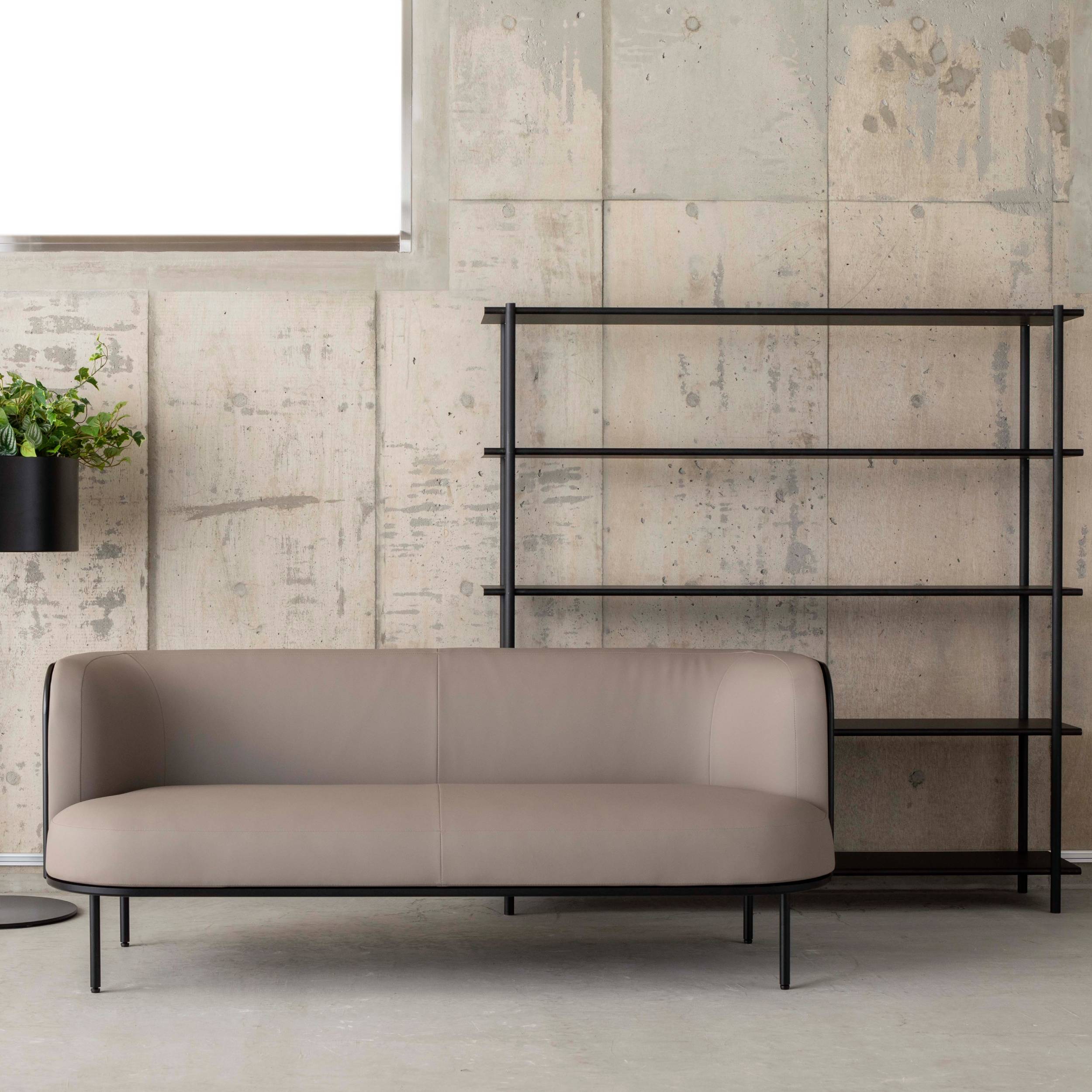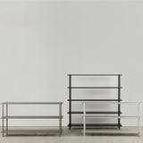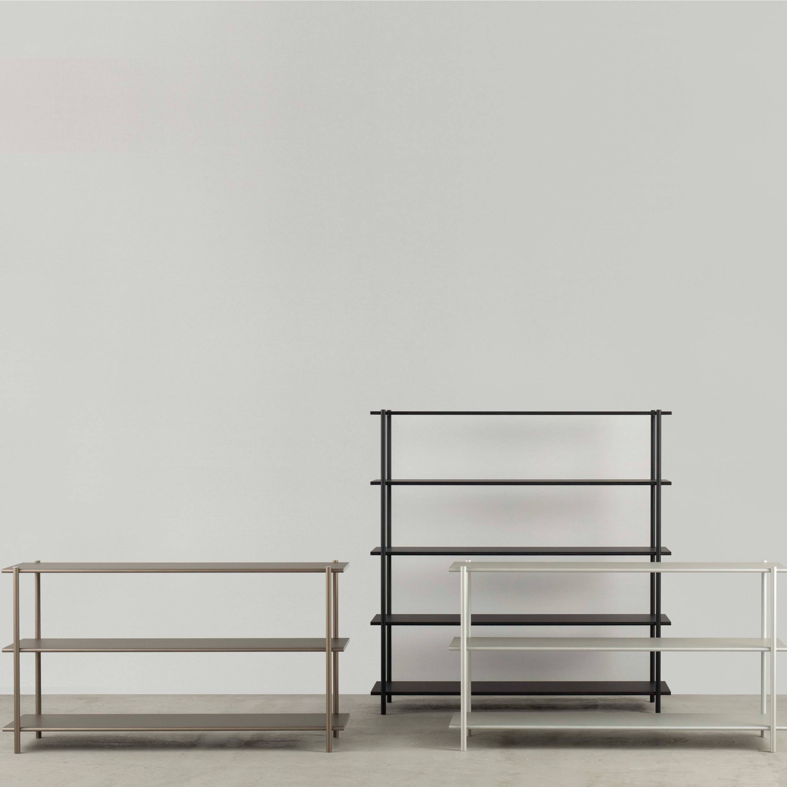 Based in Tokyo, By Interiors often employs aluminum honeycomb-core panels for strength thereby eliminating the need for other structural elements—as in its sleek Muk shelving by Kensaku Oshiro. In a choice of 2 heights and silver, black or champagne finishes, the clean-lined piece achieves a refined character not found in conventional shelves.