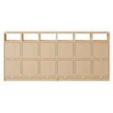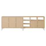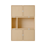 Designed for adaptability, the Muuto Stacked Storage System Sideboards' components are crafted from PU-lacquered MDF or oak-veneer. Available in oak, white, and brown green finishes, and offered in multiple configurations, this sideboard complements a variety of interior styles.