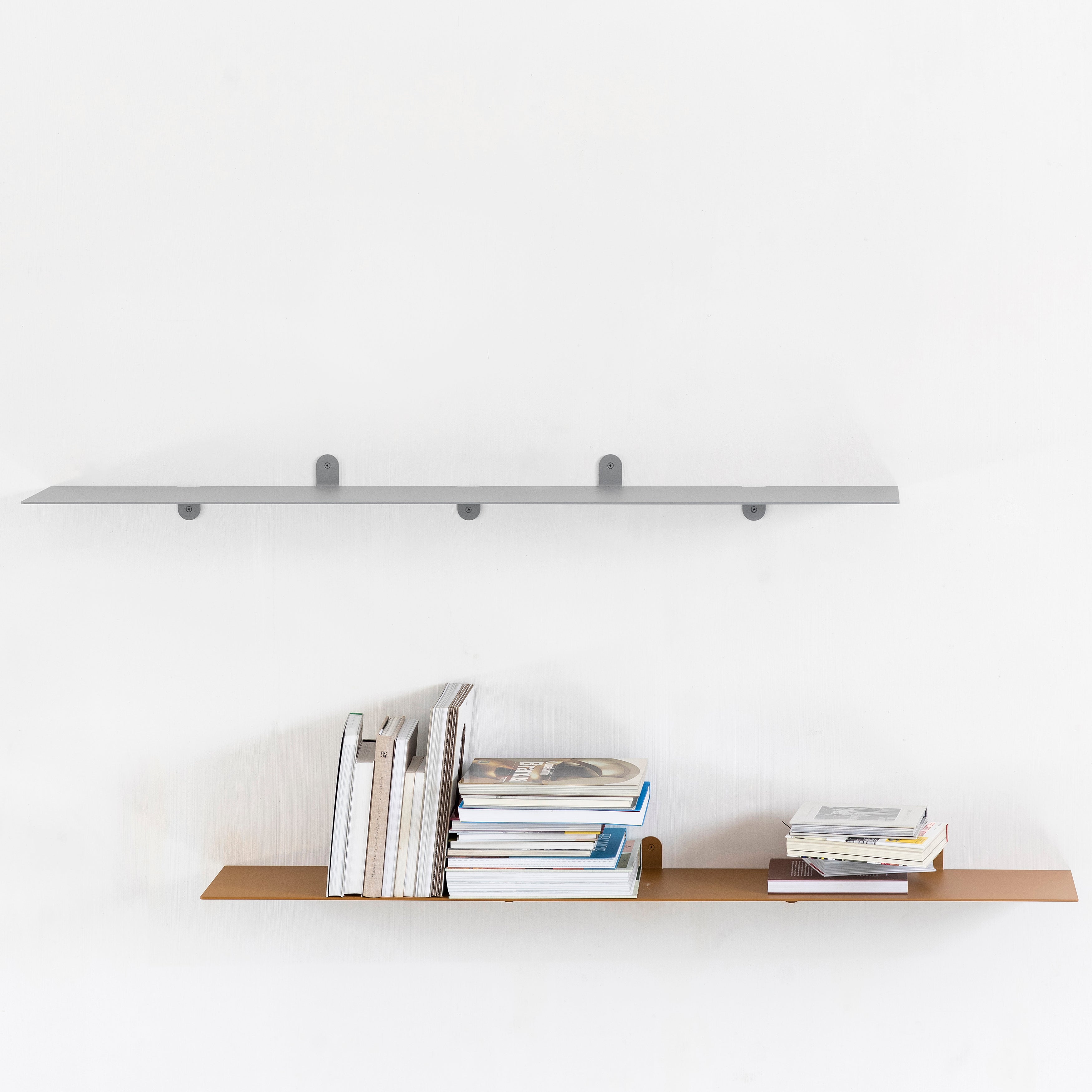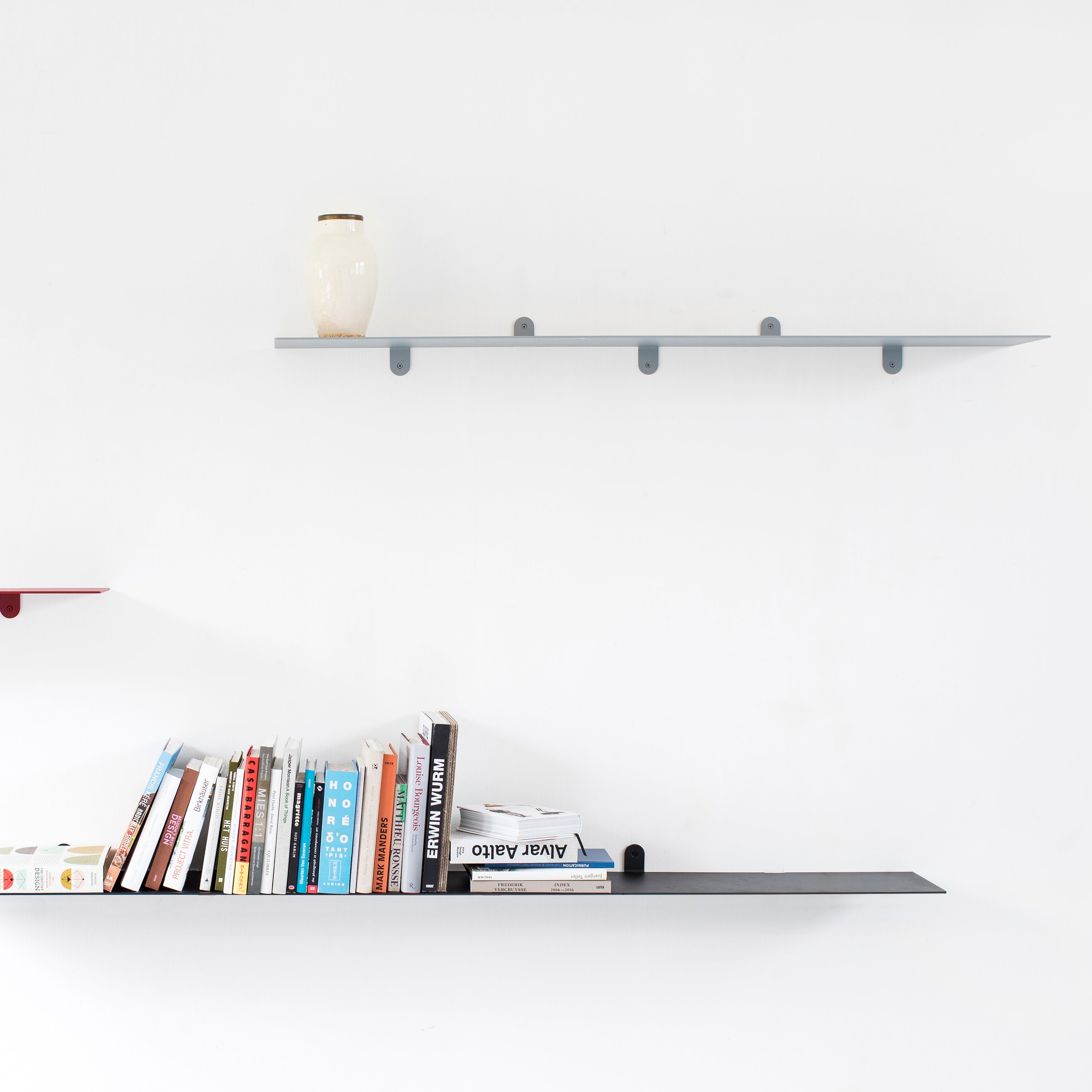 A striking 2 meters long (or just over 6 feet), Muller Van Severen’s wall shelf brings stylishly expansive storage or display possibilités to a room. The steel unit N°2 is all sleek lines, incorporating laser-cut flaps that seamlessly hold it in place. Available in a range of edited color choices from calming neutrals to sprightly accents.