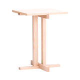 The Elements Table features a square top supported by a distinctive solid wood base, offering a sturdy surface for casual dining or light use. Made from oak or ash and finished in tones such as white, natural, smoked, sumi, or indigo, the table brings together precise construction with thoughtful detailing. Its size makes it suitable for small-group settings in indoor or sheltered spaces.