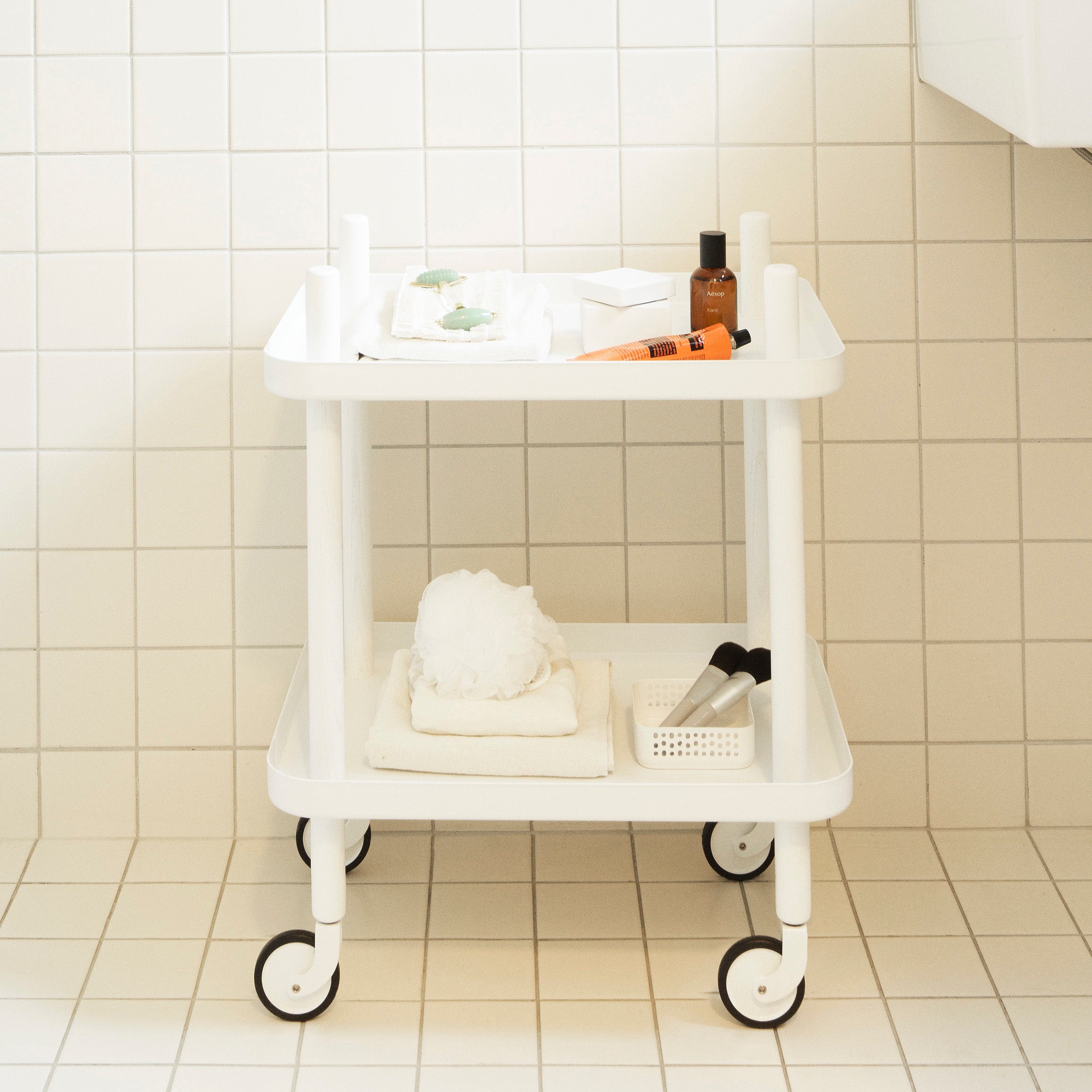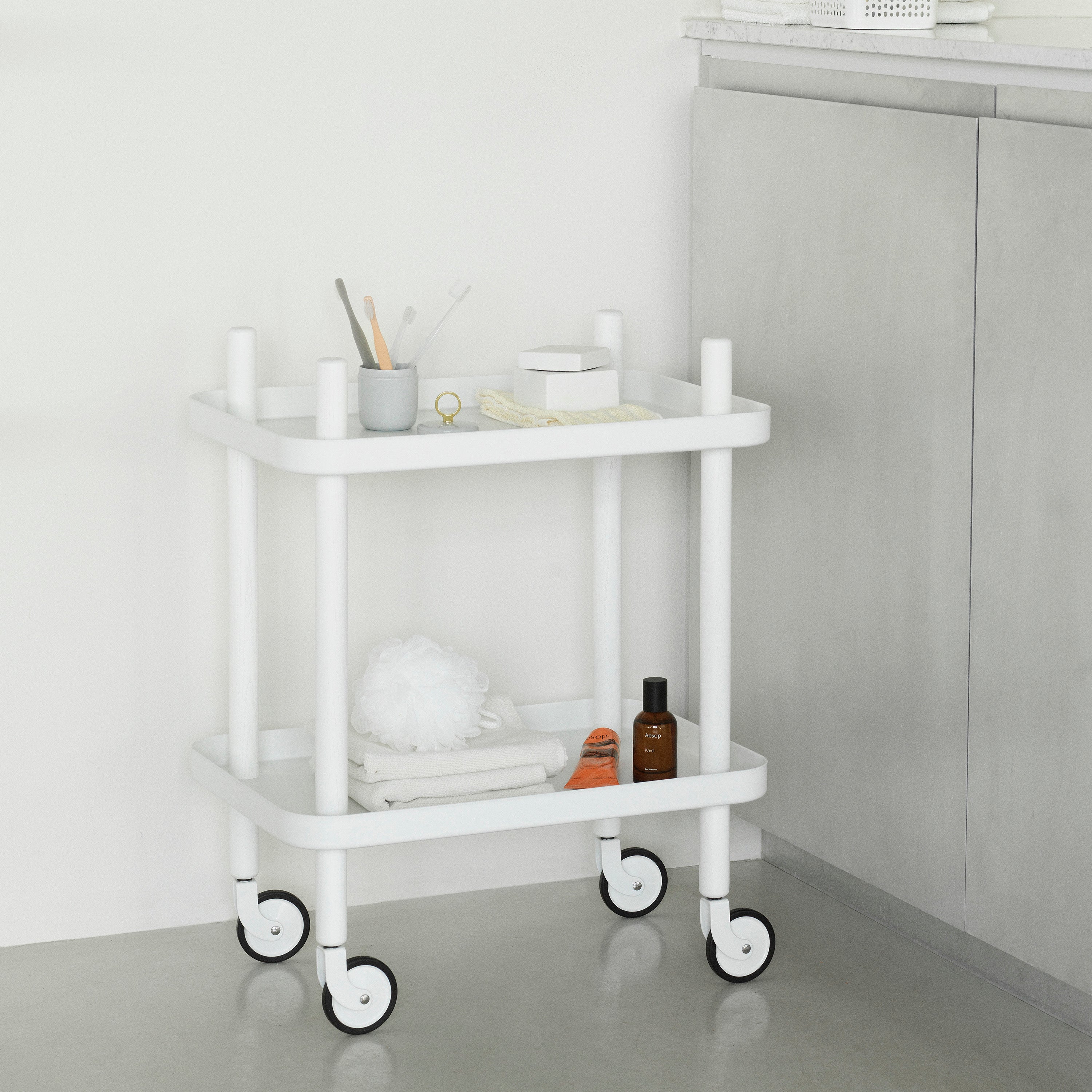 Block Table Cart: White + White