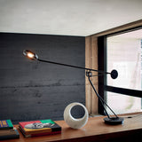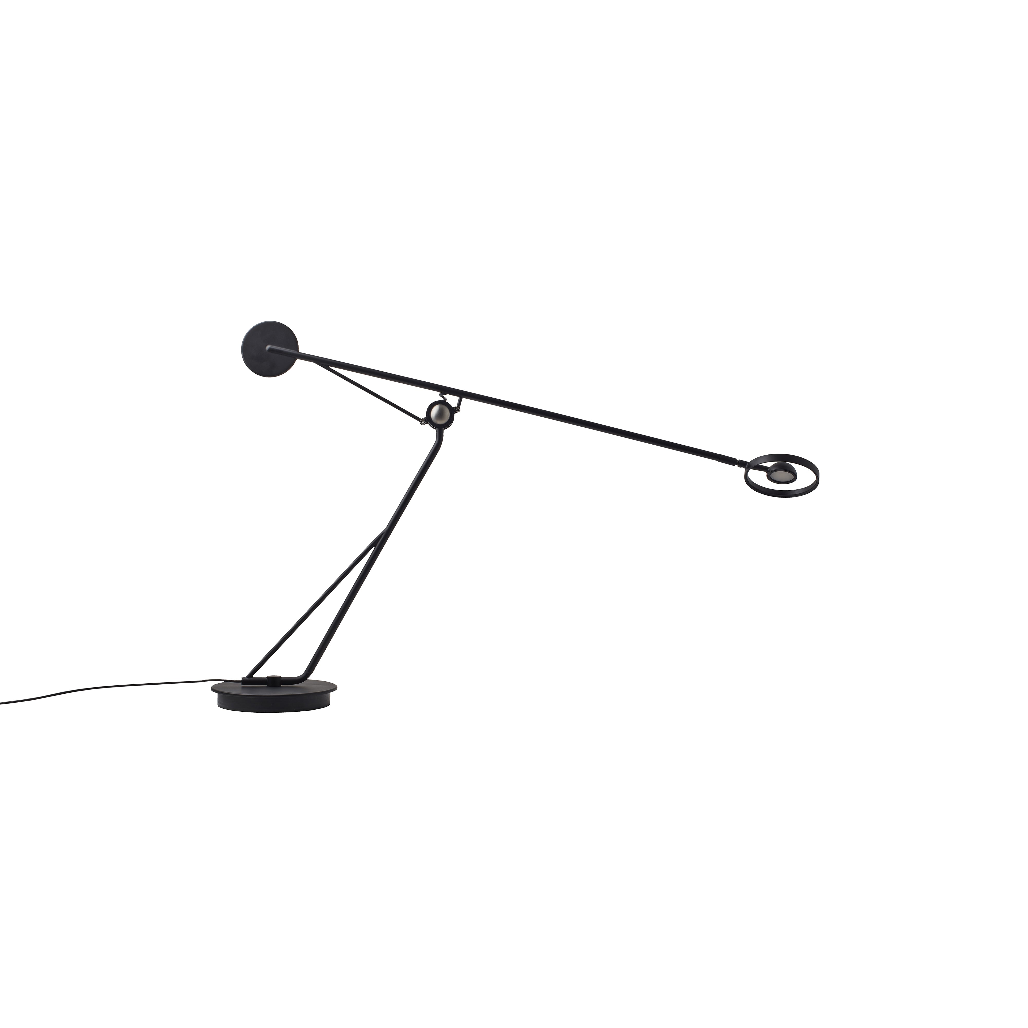 Inspired by the idea of a fluid gesture, Aaro readily translates as a superb LED table lamp with a chic functionality. The sphere as its joint allows the light to effortlessly swing in any direction as desired. German designer Simon Schmitz' linear black anodized-aluminum and steel form takes its rightful place alongside DCW Éditions' lineup of timelessly stylish fixtures.