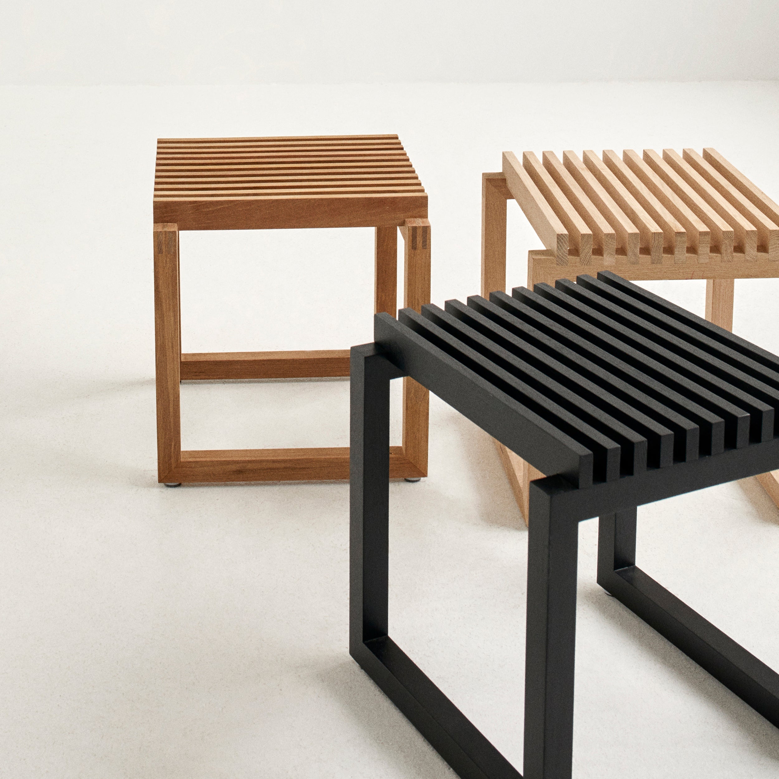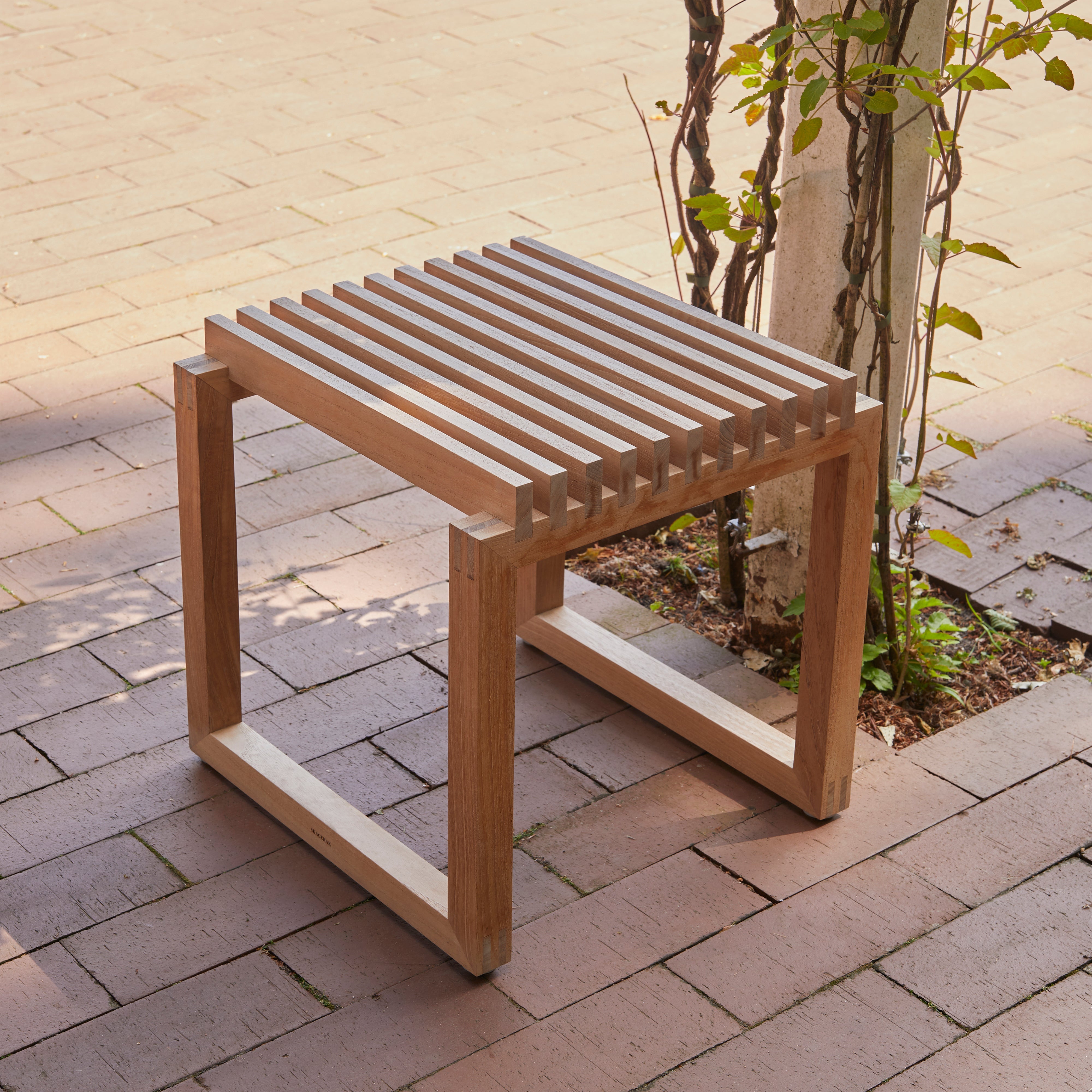 Danish designer Niels Hvass' minimalistic slatted stool also comes in a teak version for carefree use outdoors. Cutter makes a handy extra seat or side table and can also be kitted out for storage by adding the large Cutter storage box on wheels underneath. Crafted in FSC-certified timber, the wood's untreated surface will change color over time and eventually turn into a beautiful silvery grey.
