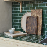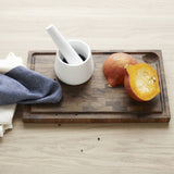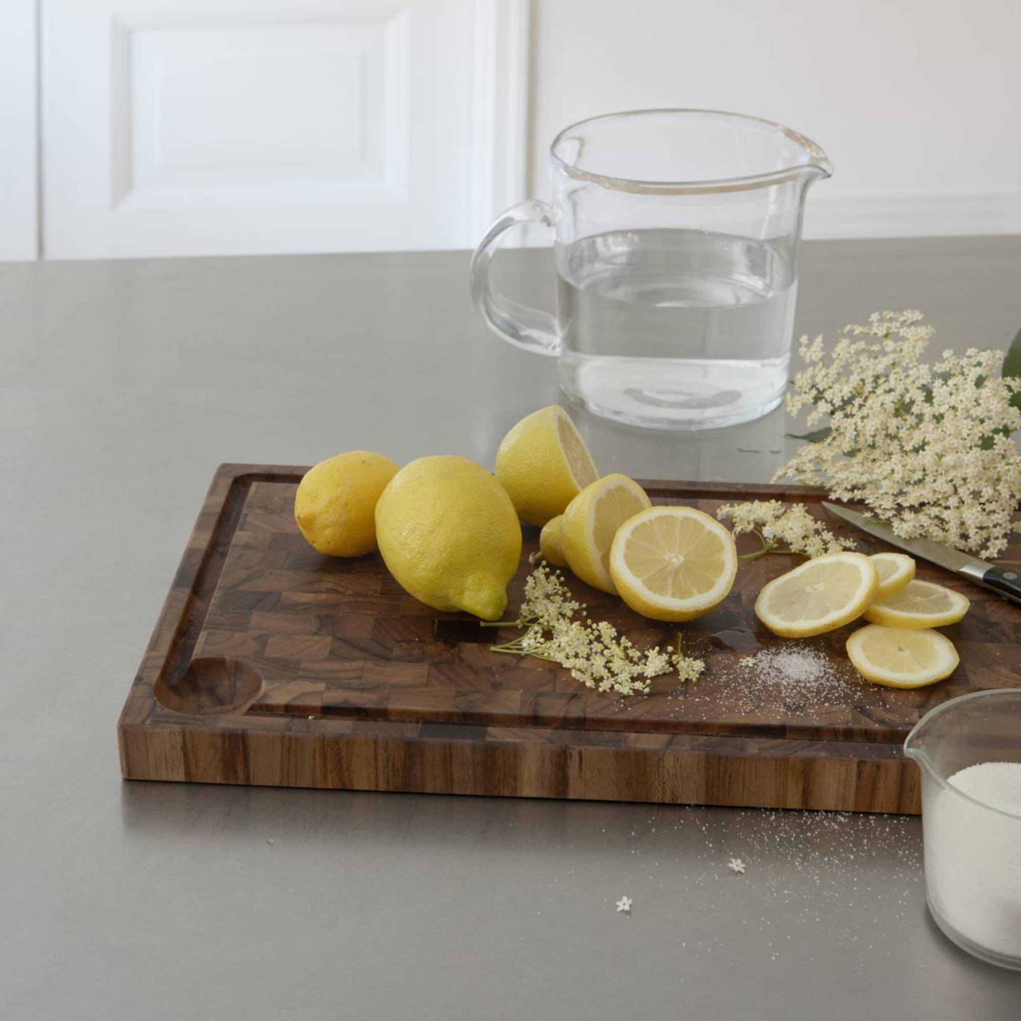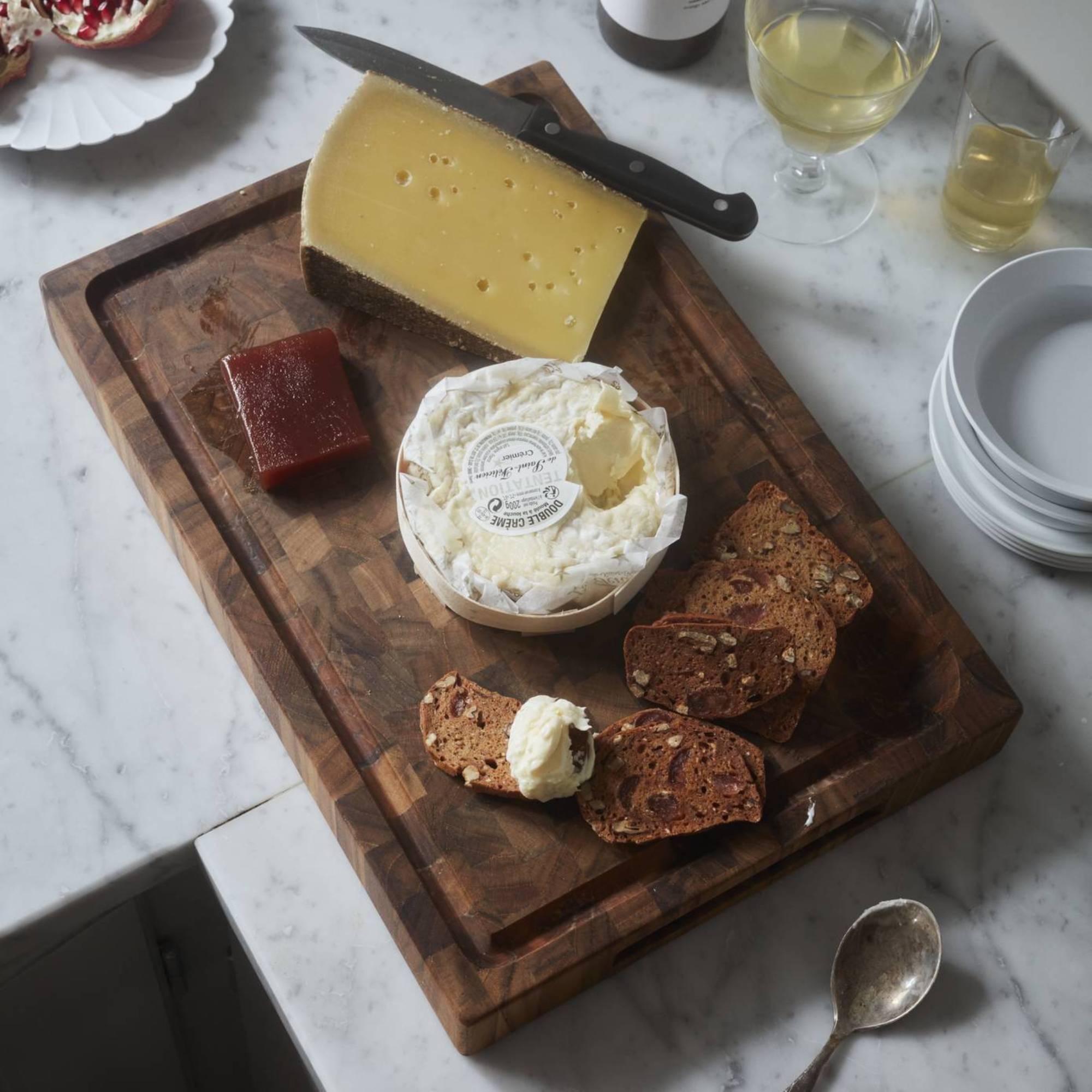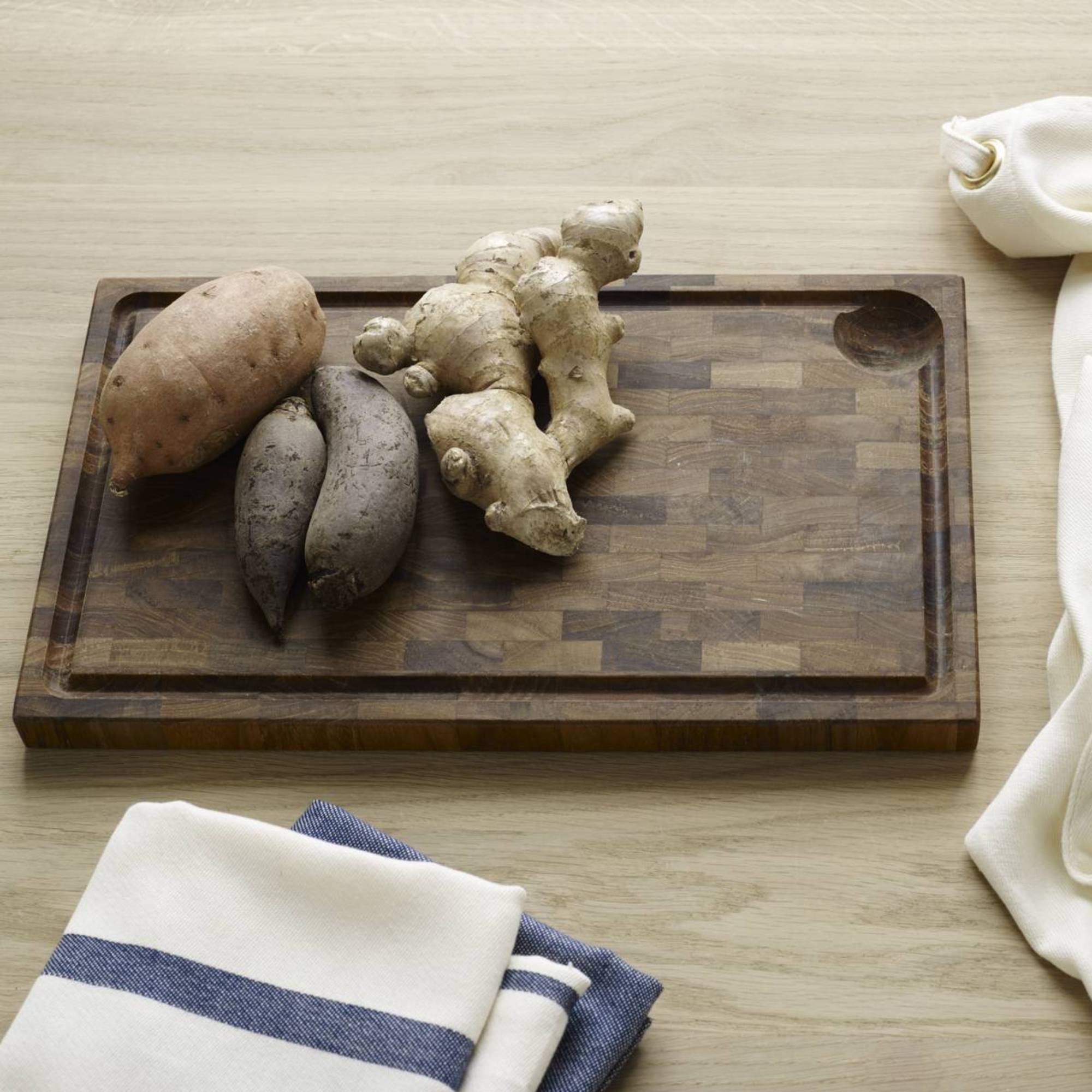 From Skagerak’s Nordic-influenced Dania range of culinary accoutrements comes a knife’s new best friend. In a range of sizes, the cutting board is assembled from small pieces of teak end grain, giving each surface a unique pattern in varied light and dark brown tones. The sustainably sourced teak also contains natural oils resistant to moisture and germs. Upward fibers on end grain readily absorb the impact from knife blades and assure a long-lasting board that counteracts cuts and warping. The board has built-in grips on each end and, except for the smallest size, a grooved edge that collects liquids and crumbles.