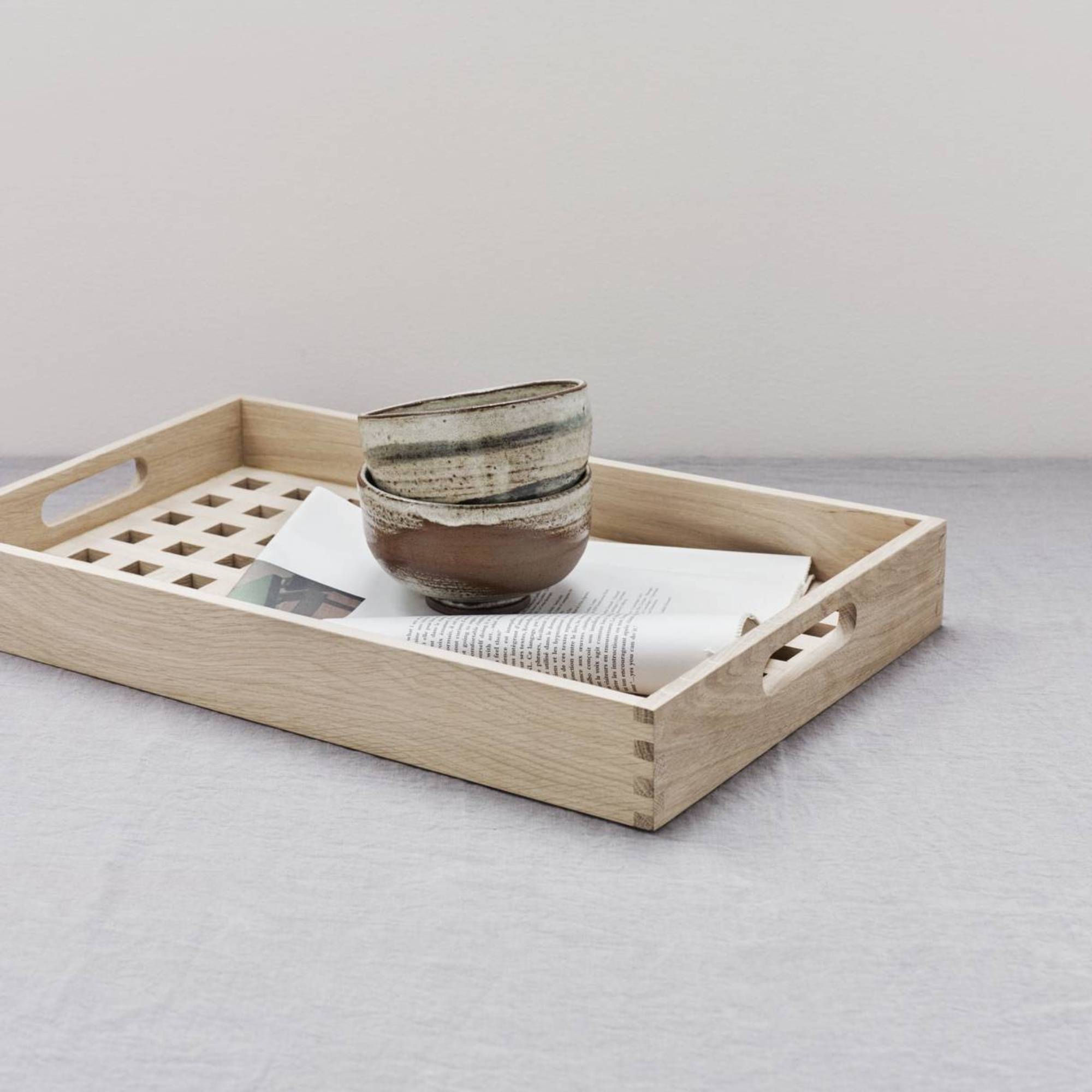Skagerak debuted its first-ever accessory in 1982 and Fionia Tray is still going strong. Beautifully crafted in either natural oak or teak, it makes for an elegant serving tray, indoors or out. In a choice of 2 sizes, this modern classic has handles carved into the ends of the tray, making it easy to carry drinks or food from kitchen to table, out to the patio or into the bedroom or study.