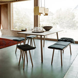 Georg’s fluid interplay of a Nordic heritage and subtle Japanese influences converge in a simple but sophisticated dining table. Designer Chris Liljenberg Halstrøm creates generous seating for 6 or more by drawing the table legs in underneath to minimize its footprint. Sparingly proportioned with sturdy but slender lines, the table is handsomely crafted in natural or black-finish oak.