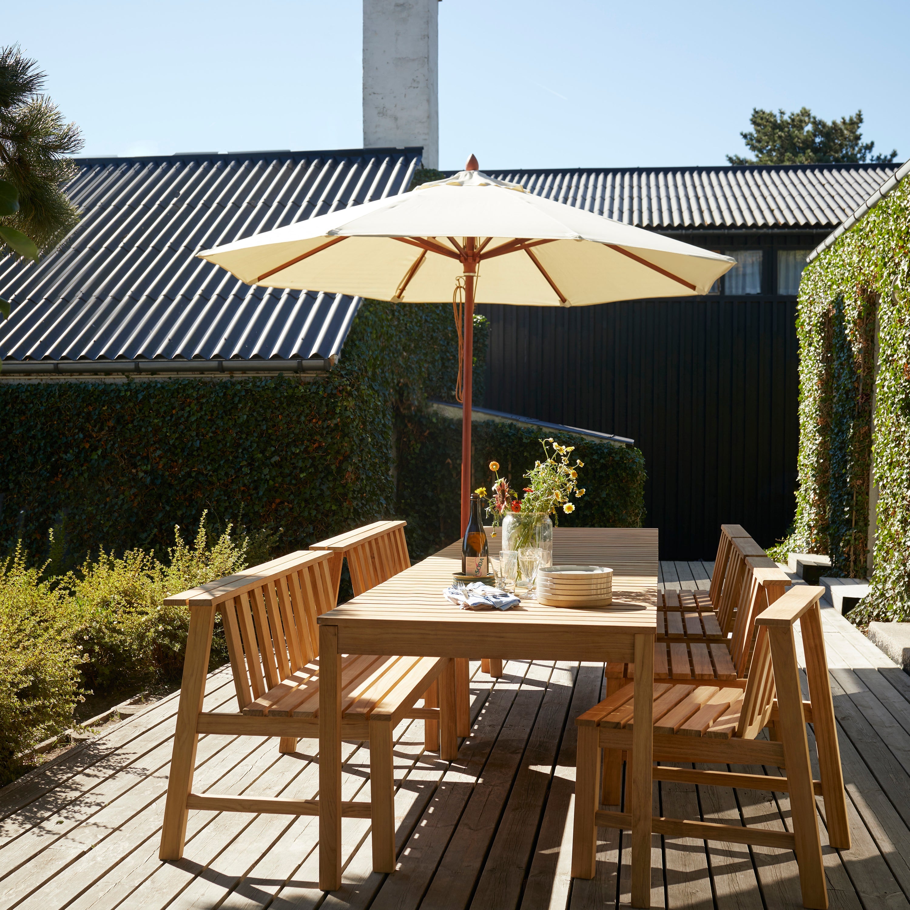 Messina is Skagerak's go-to sun umbrella, available in a large square and round. With its classic design and sturdy materials it will be a perfect outdoor accompaniment for many years to come. With a pole crafted of durable Meranti wood, the fabric umbrella is made of a longwearing Teflon-treated material which is water and dirt-repellent.