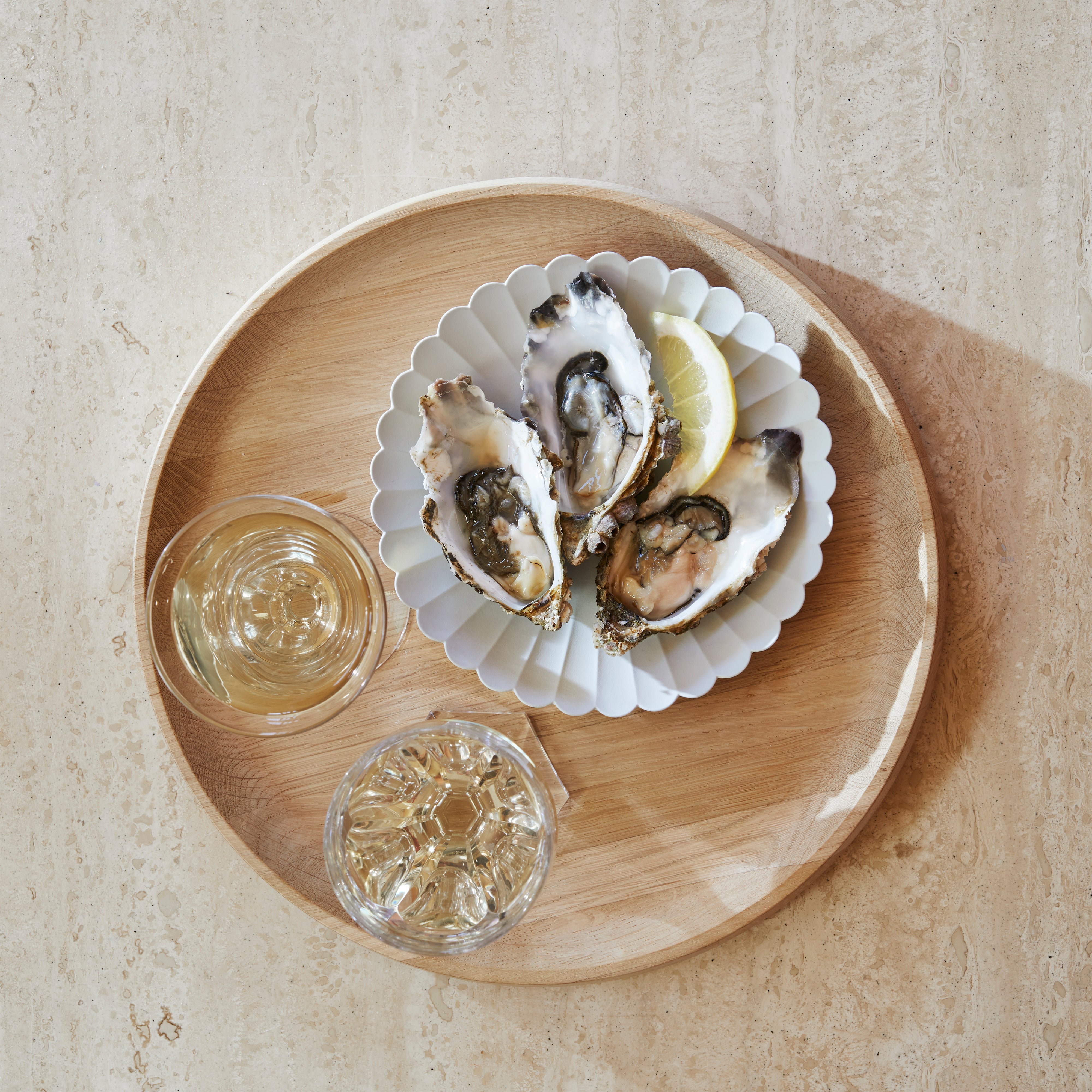 VE2 studio duo Hugo Dines Schmidt and Morten Lauritzen offer a strikingly spare oak tray with a circular shape and rimmed edge that hews to the Scandi design tradition. Simply named Nordic, it can carry smaller bowls and dishes or serve as a platter for nibbles like fruit, cheese or charcuterie. Fashioned from sustainably sourced European timber, the tray has small rubber feet underneath which lend it a floating expression as well as making it easy to lift up from the table.