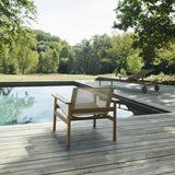 Poolside or on the patio, Pelago Lounge Chair hews to the collection's signature FSC-certified frame in solid teak while Note Studio's designers juxtapose a weatherproof Sling fabric seat that lends lightness and transparency. The seat angle is perfectly calibrated for whiling away the hours and wide armrests easily hold a drink or a book. Optional version available with a foam cushion covered in weatherproof Sunbrella fabric.