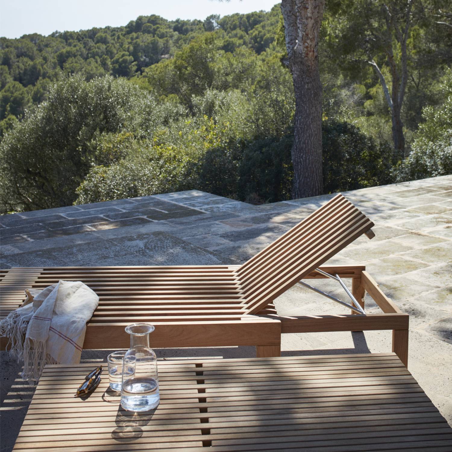 Ingeniously, Danish designer Povl B. Eskildsen combines a sunning chaise, bench and coffee table all in one handsome package. Riviera’s versatile design has become a contemporary classic with its expandable configuration in slatted solid-teak. The lounge can be readily extended in length and a section raised to form the backrest as outdoor needs dictate.