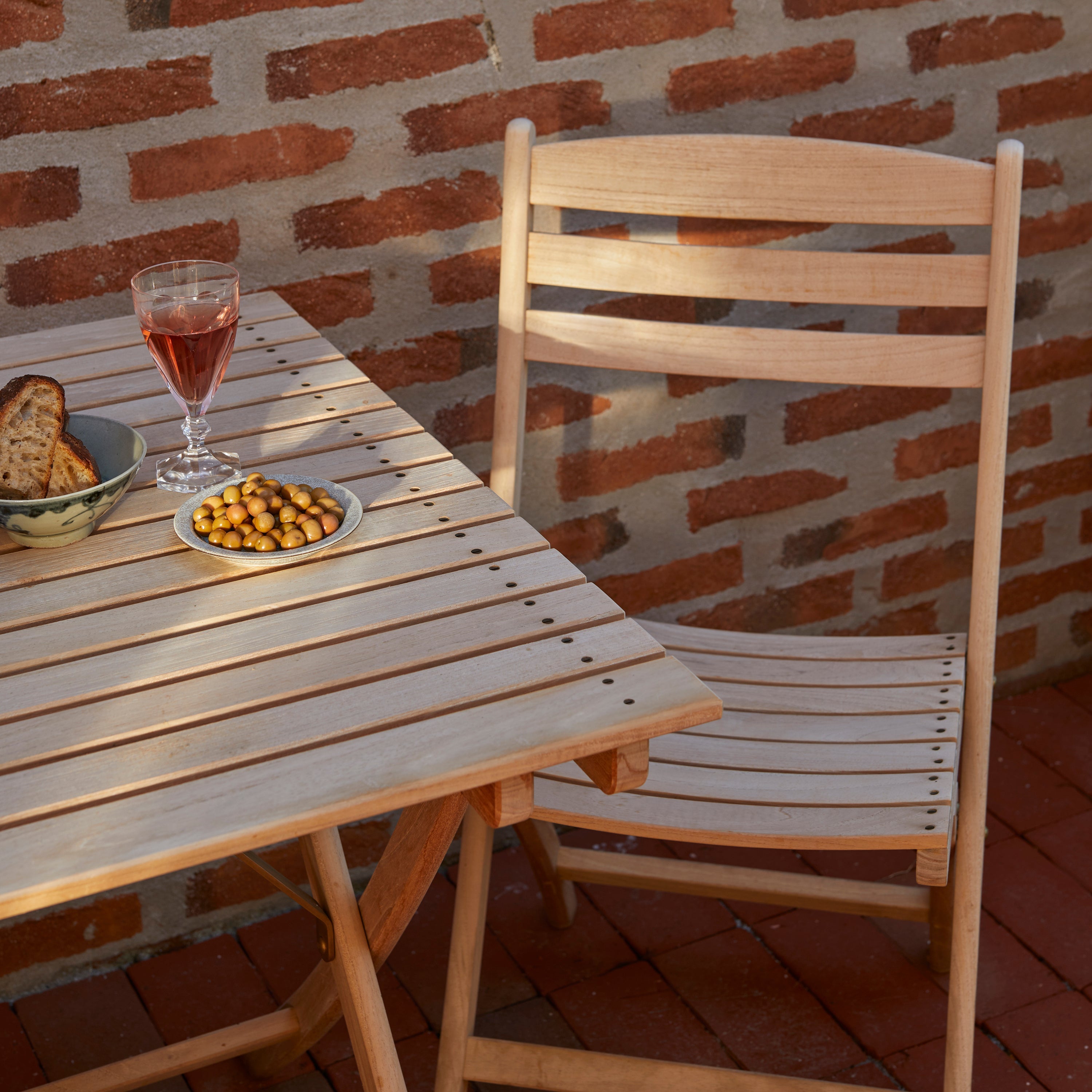Perfect for dinner à deux, Skagerak’s square table graces a smaller balcony or patio and is easily foldable for storage during winter. A compact addition to designers Anders & Lars Hegelund’s outdoor Selandia collection, it’s fashioned from sustainably sourced natural teak with a slatted round tabletop. The untreated wood will patinate over time to a silvery grey or the use of a suitable furniture oil will help preserve the original color.