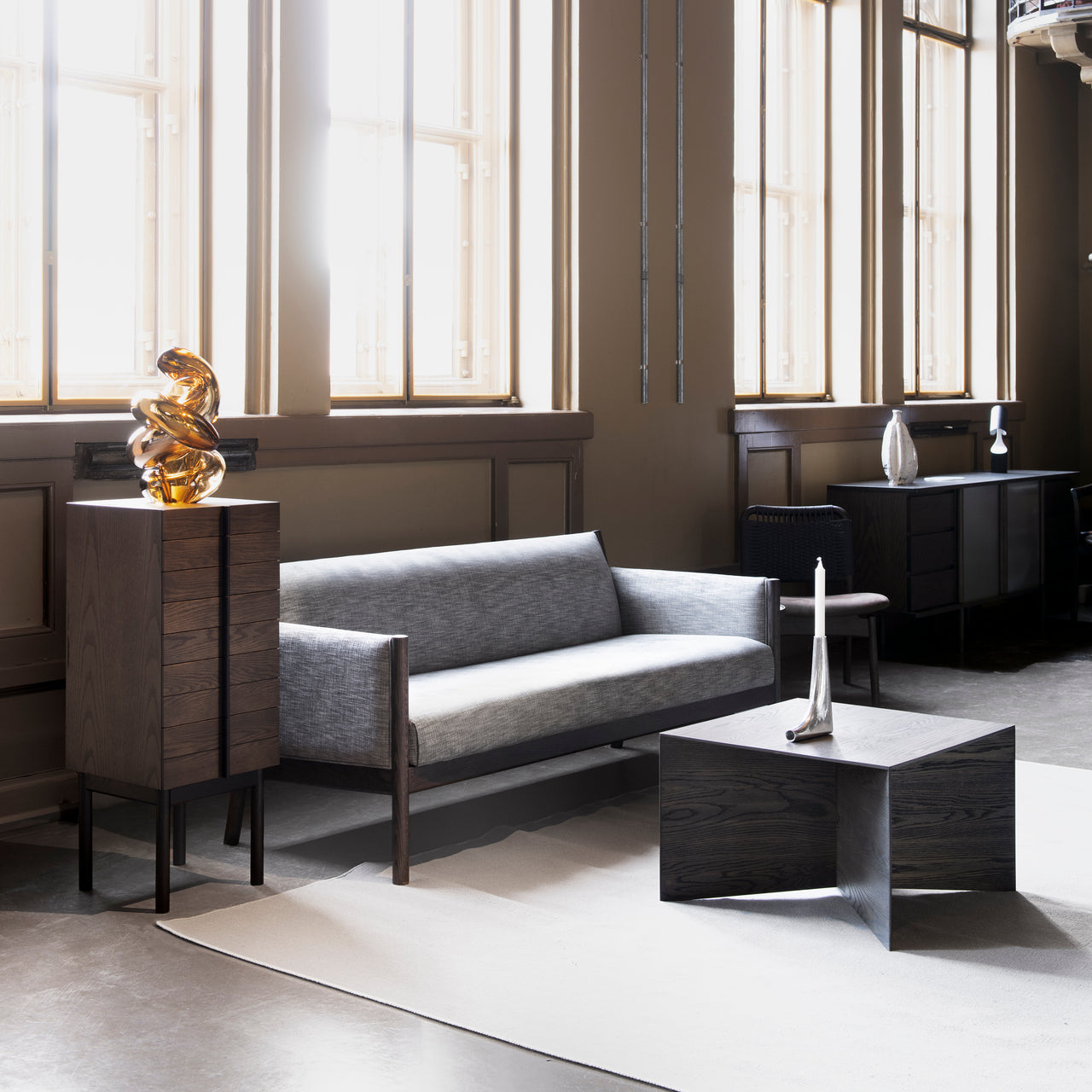 The word "Rin" translates to "dignity" in Japanese, which is reflected in the sofa's design. Its light structure highlights the natural beauty of solid wood, and the sofa is intentionally lifted off the ground, creating an illusion of space. The Rin Sofa is available in both one-seater and three-seater versions. Available in a range of stocked fabrics.