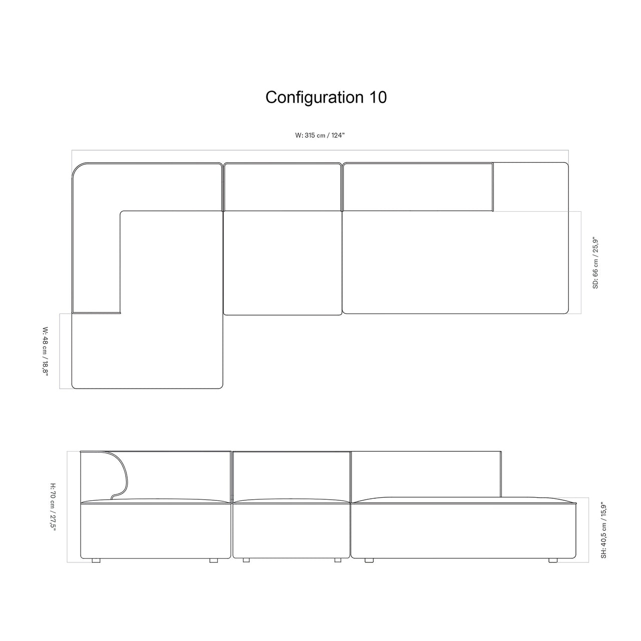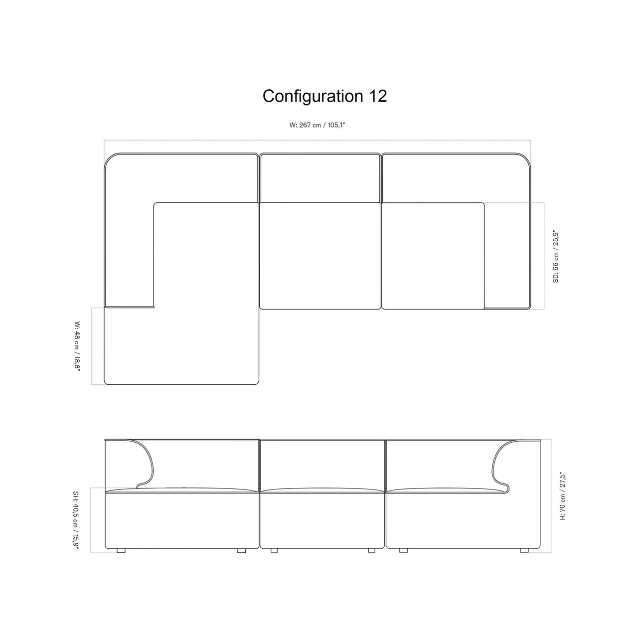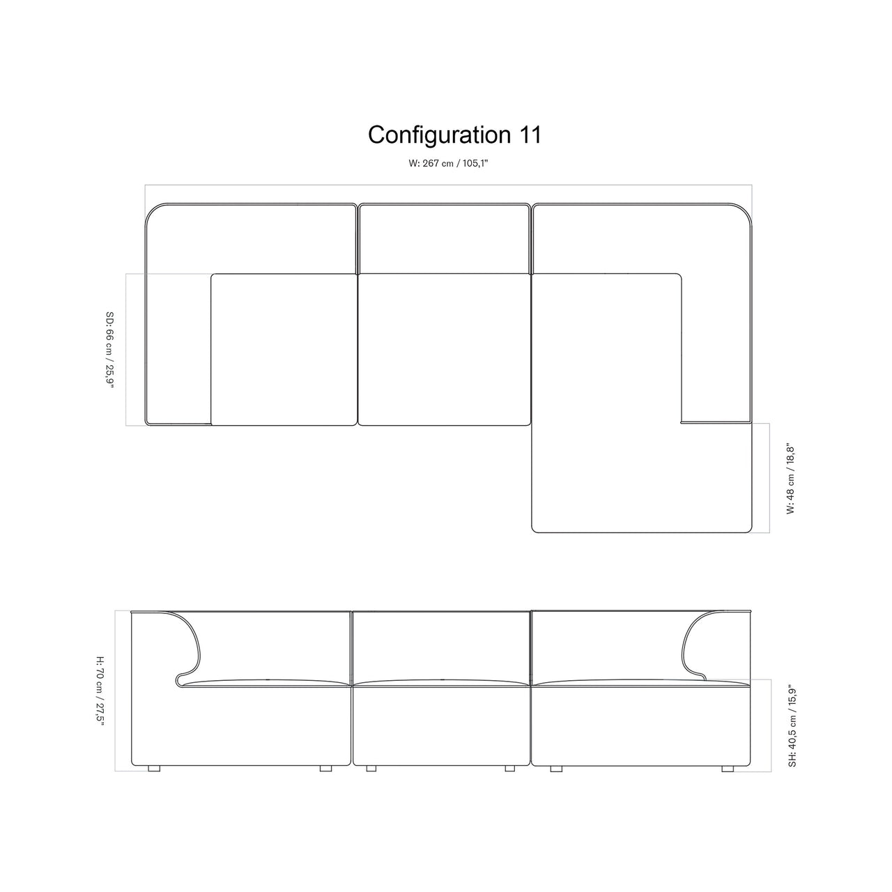 - Configuration 11 & 12: 27.6" h x 105.1" w x 56.7" d (70x267x144cm)