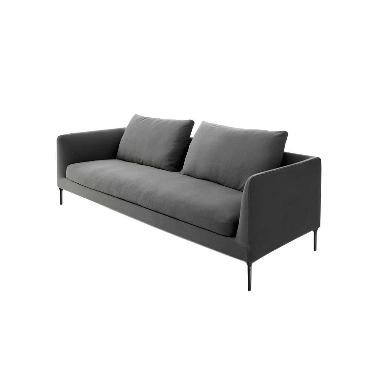 A comfortably proportioned 3-seater, Delta 245 can be used as a standalone sofa or as part of a sectional with other units in the Bensen collection. The smooth lines of the design and soft down-filled cushions bring a casual vibe that plays on the comfort of the multi-layer seat cushions on a webbed frame. Optional back cushions can be interspersed with smaller matching throw-pillow styles for a personalized look. Built-in steel frame with recessed legs allows for corner or inset foot placement.