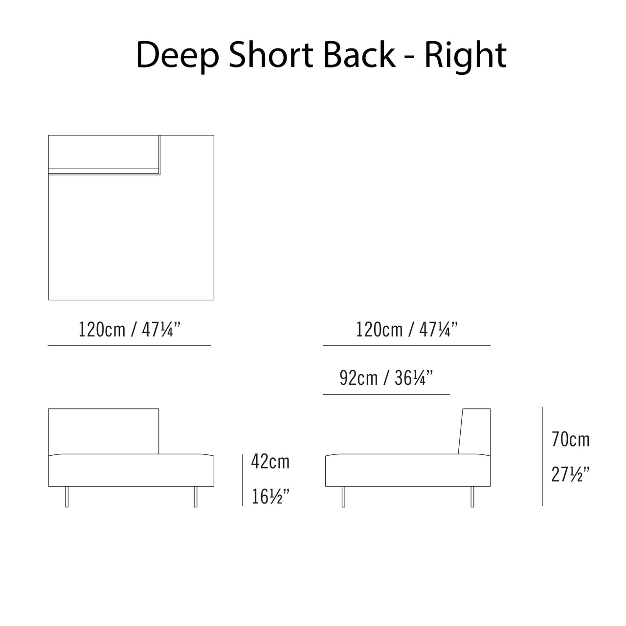- Short back Left & Right: 27.5" h x 47.2" w x 47.2" d (70x120x120cm)