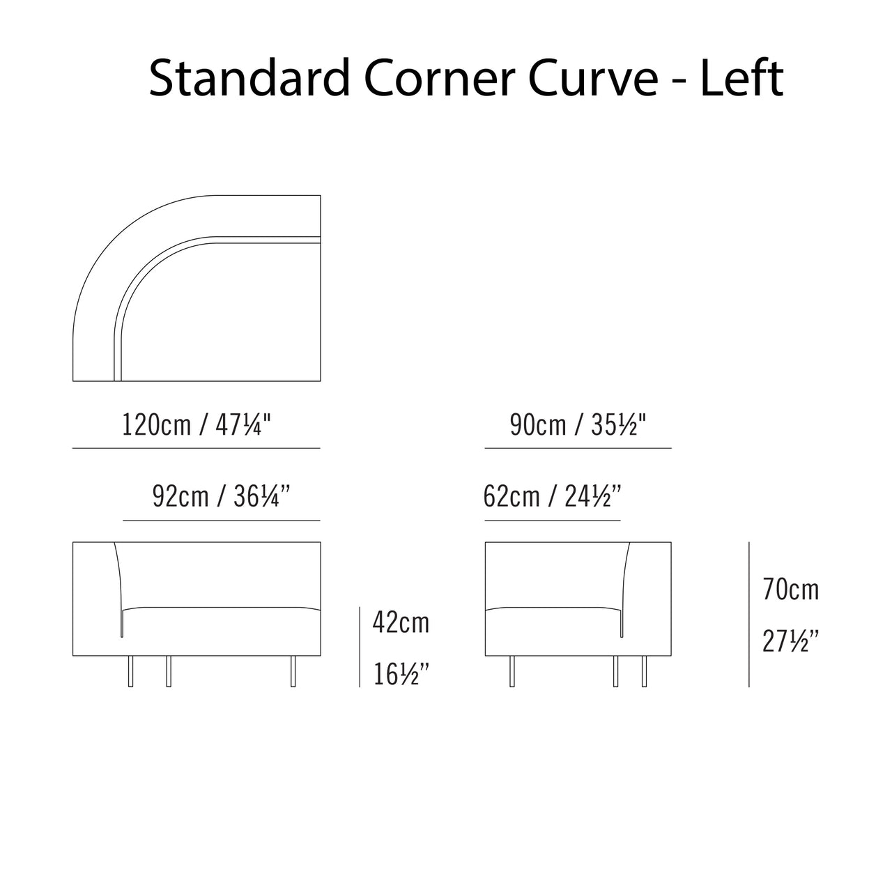- Curve: 27.6" h x 44.1" w x 37" d (70x112x94cm)