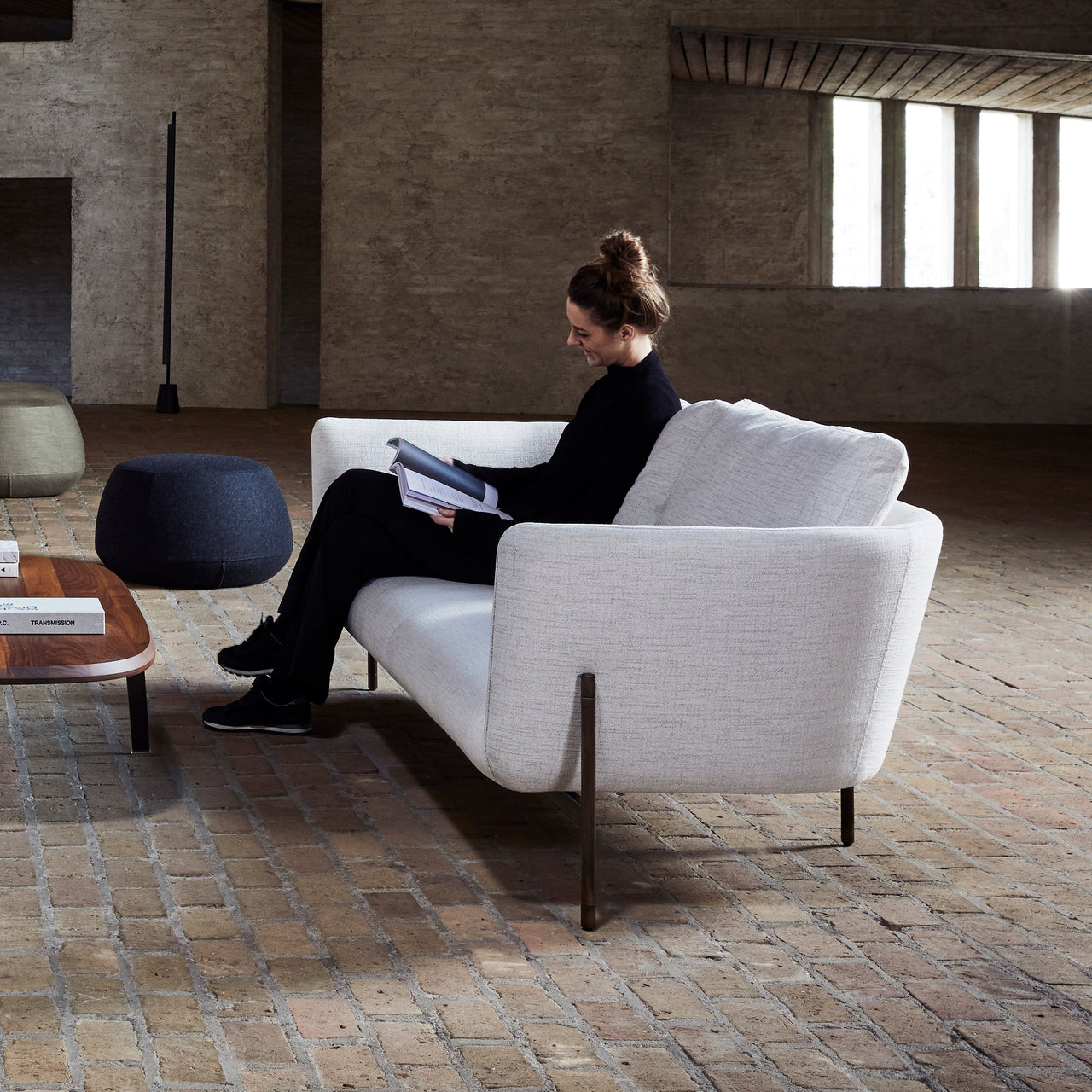 Appearing almost to float above the floor on its slim metal frame, Loft beckons with an embracing curve. The midsize 250 has a clean-lined appearance with an integrated seat design and squishy down-filled back cushions. Metal legs in a choice of chrome, black or bronzato finish extend the sofa’s streamlined appeal.
