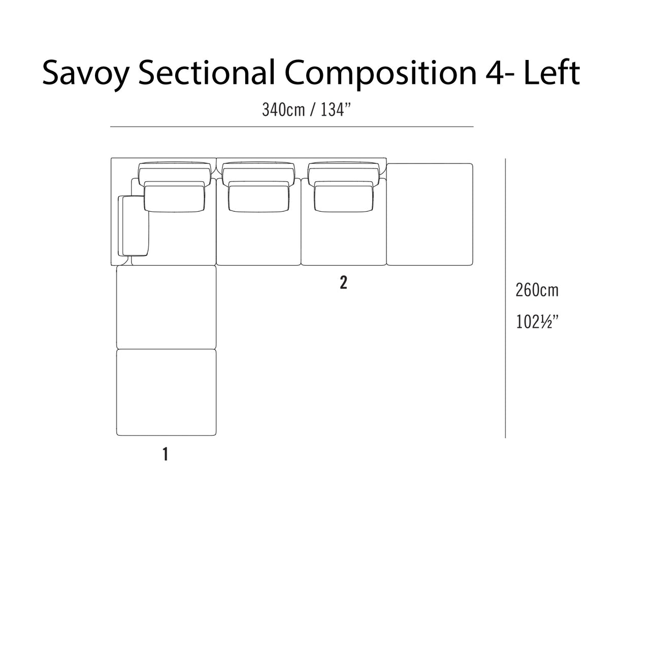 Offering a luxurious layered take on creature comfort as well as expansive sectional configurations, Savoy’s sleek style entices in any environ. With Italian-crafted finesse, the sofa features distinctive doubled up cushioning across the tapered backrest and wood frame construction with high-density foam, set on slim parallel legs.