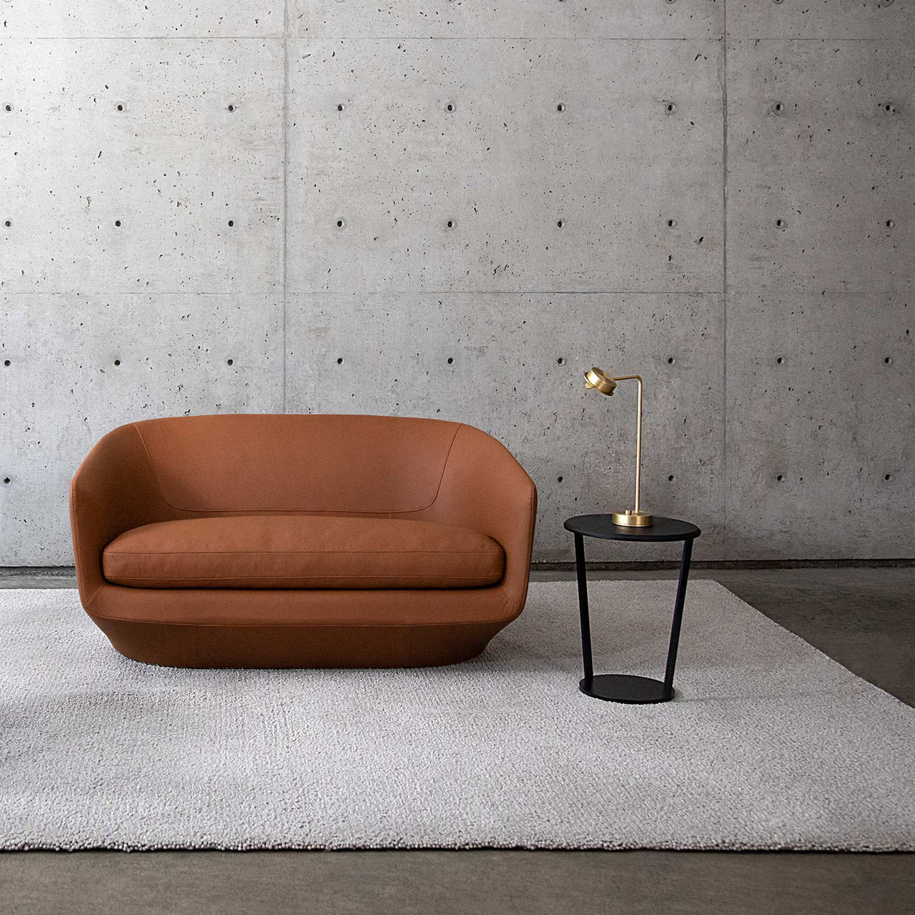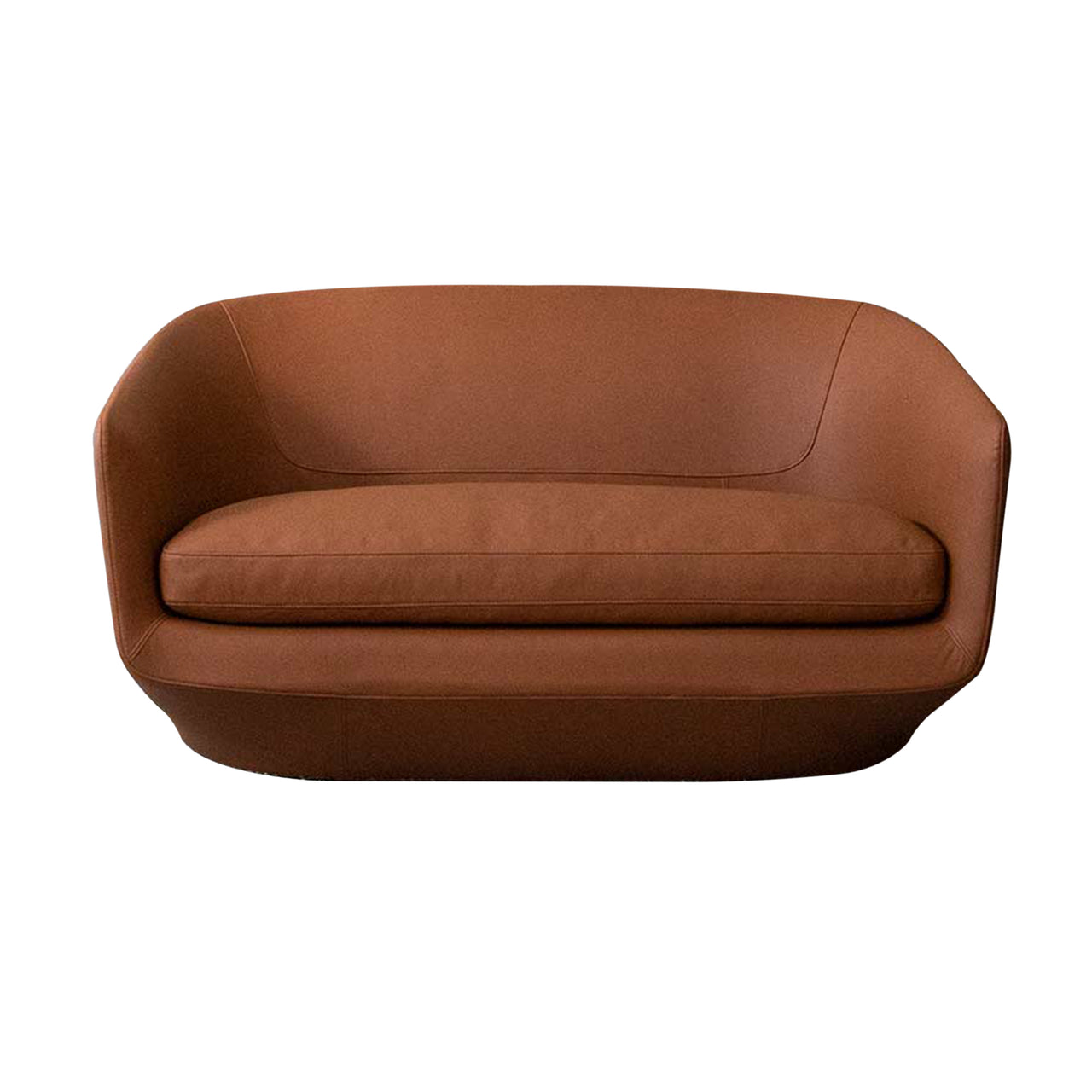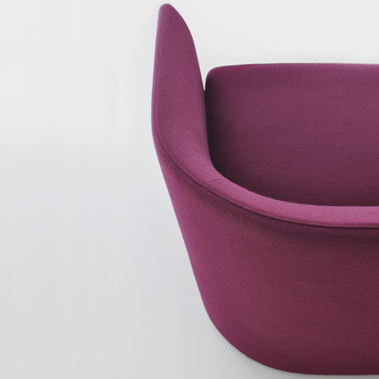 This 2-seat sofa complements Bensen's U Turn series of swivel lounge chairs with similarly rounded lines and a tapering base. The soft down seat and uncluttered design make this an ideal choice for either residential or contract use. A clever seat undercut provides helpful foot space while the internal steel frame and injection-molded foam create engineered comfort and a tailored appearance. And fabric covers are velcro-attached for easy cleaning or replacement.