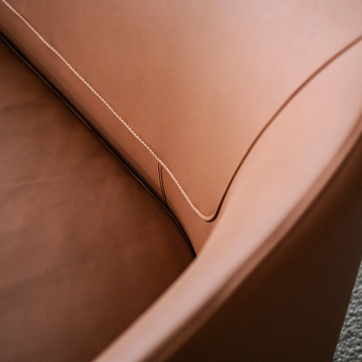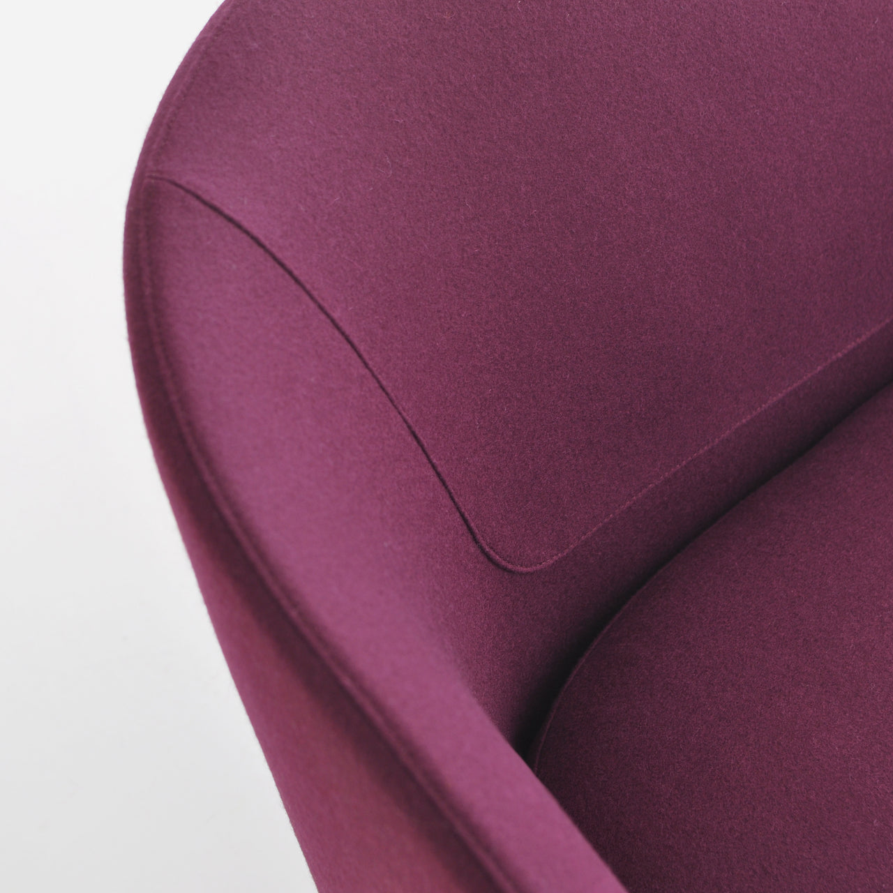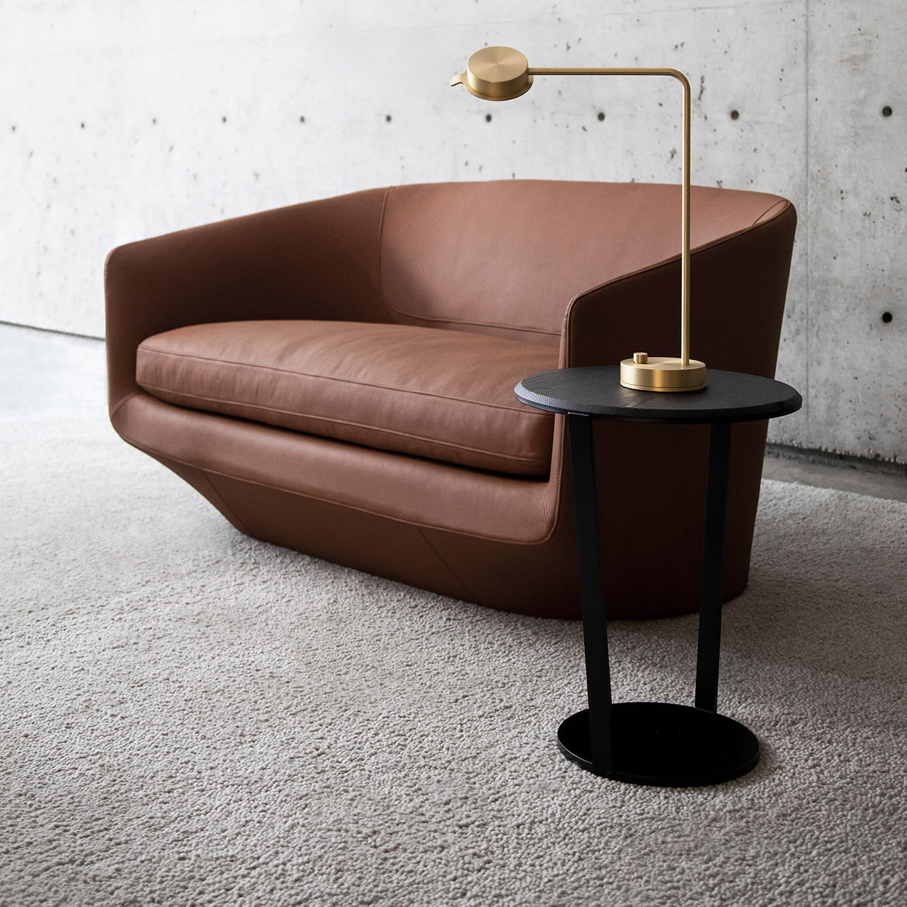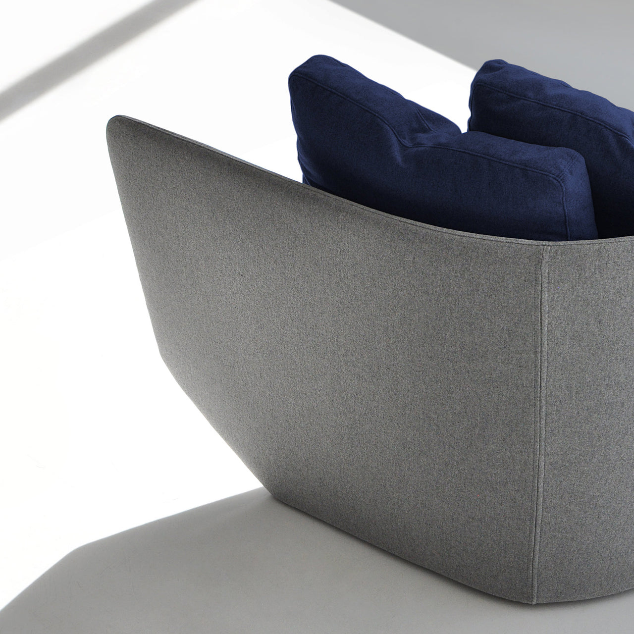 This 2-seat sofa complements Bensen's U Turn series of swivel lounge chairs with similarly rounded lines and a tapering base. The soft down seat and uncluttered design make this an ideal choice for either residential or contract use. A clever seat undercut provides helpful foot space while the internal steel frame and injection-molded foam create engineered comfort and a tailored appearance. And fabric covers are velcro-attached for easy cleaning or replacement.