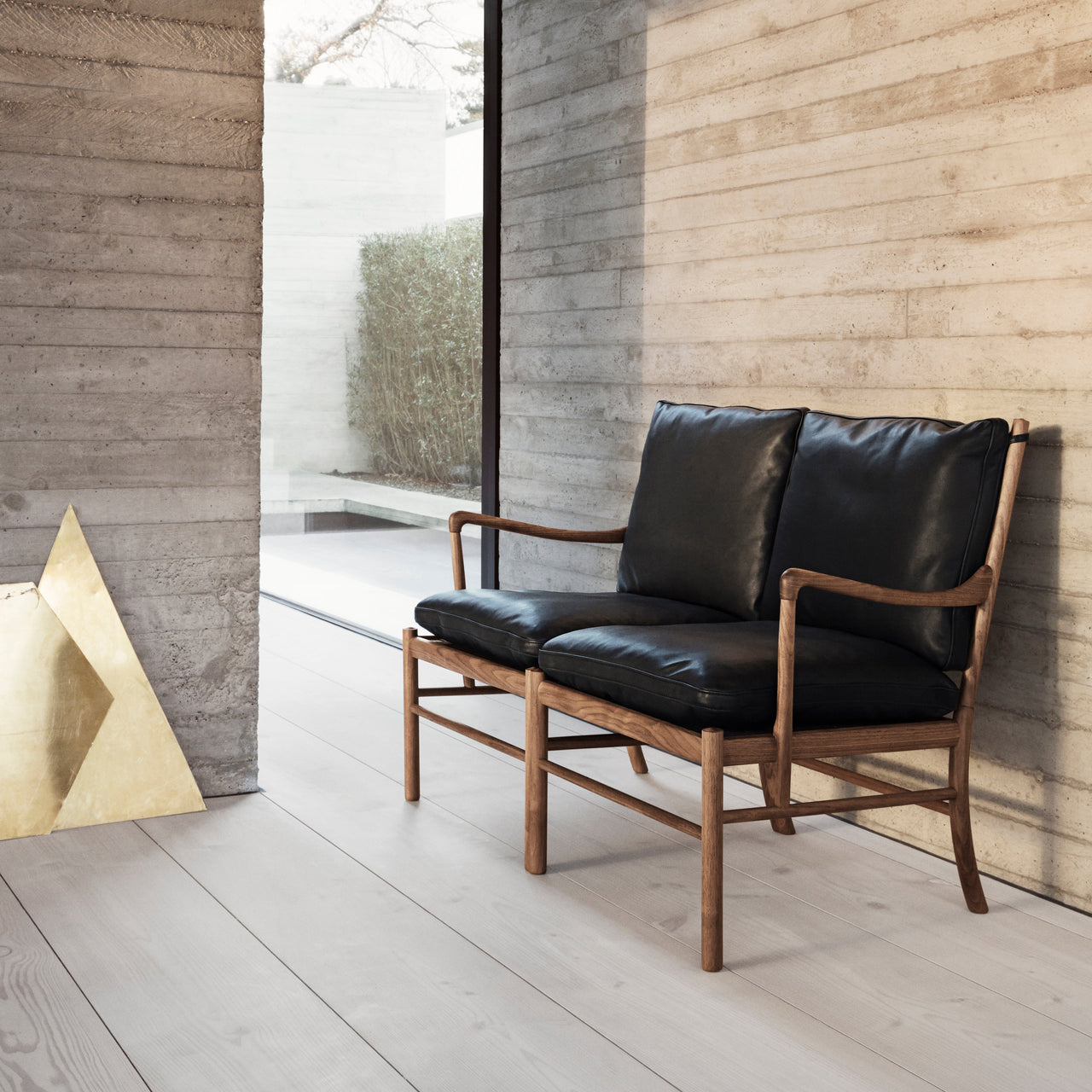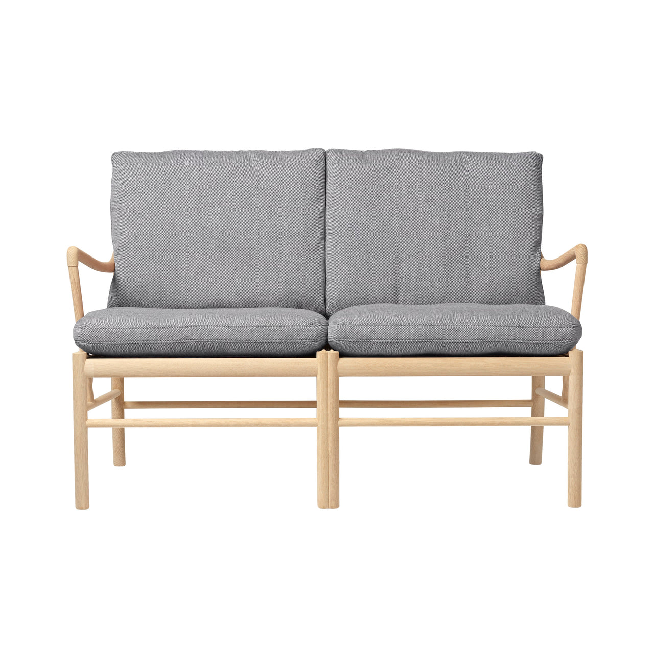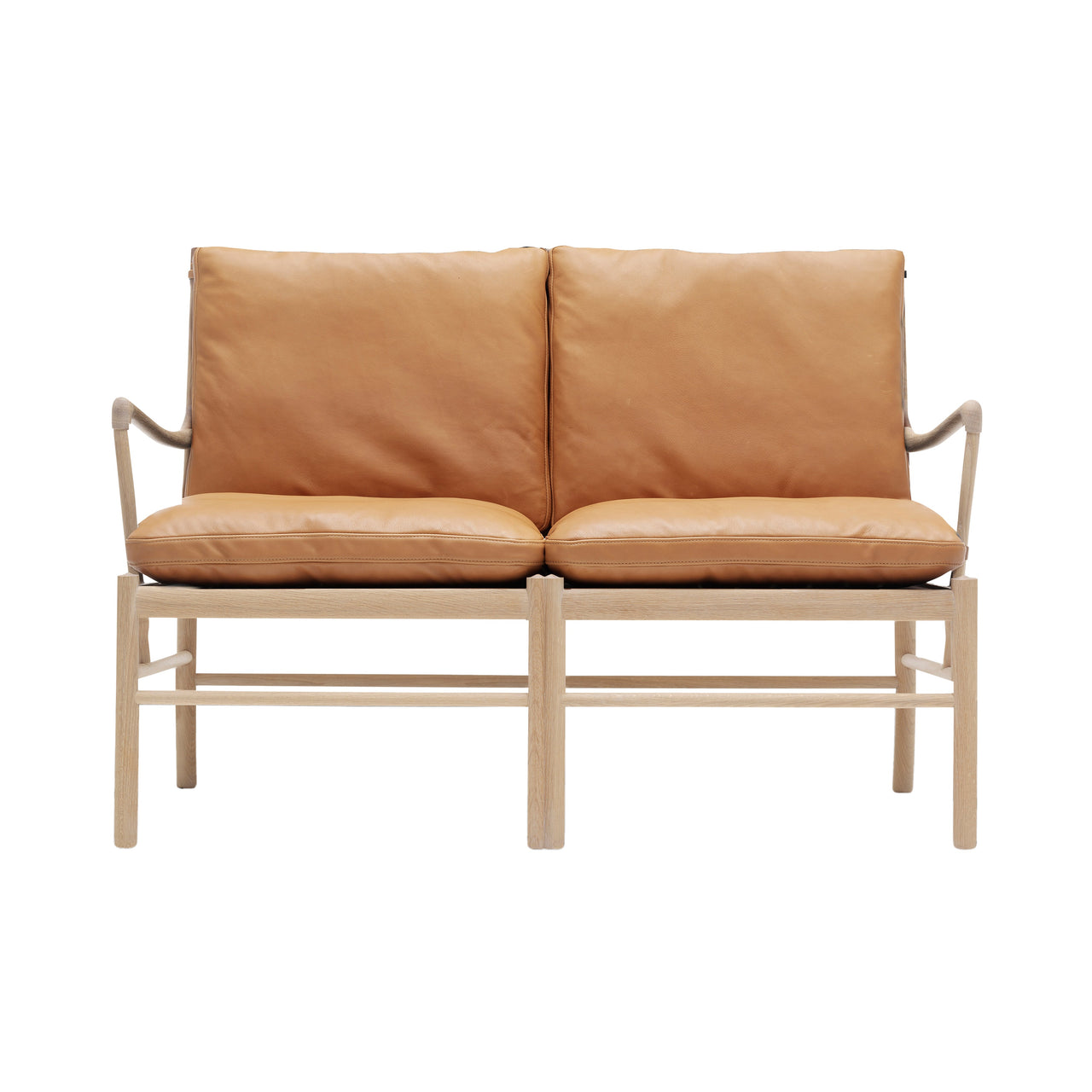 Like the companion armchair, Colonial Sofa clearly reflects modernist Danish designer Ole Wanscher’s penchant for refinement, with a nod to furniture design from 18th century England. His updated interpretation embodies a similarly timeless style, fashioned in solid walnut or oak with a range of available finishes. Custom-clad in fine fabric or leather, the softly rounded, deep cushions are plumped with cold foam and down to offer indulgent comfort within Ole's preferred slim framework.
