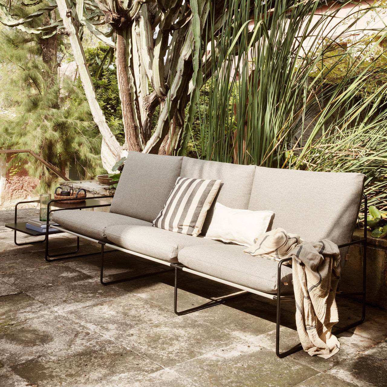 Ferm Living’s elevated approach to outdoor living brings a stylish air to its Desert seating range. For creating a amiable grouping for patio or terrace, the collection offers single seater, 2-seater and 3-seater options — complete with cozy sofa cushions covered in partially recycled material. Prior to the final powder-coated finish, the steel frame is electroplated to make it impervious to rust; inner cushion is water-resistant while the seat covers are water- and UV-resistant as well as stain-repellant.