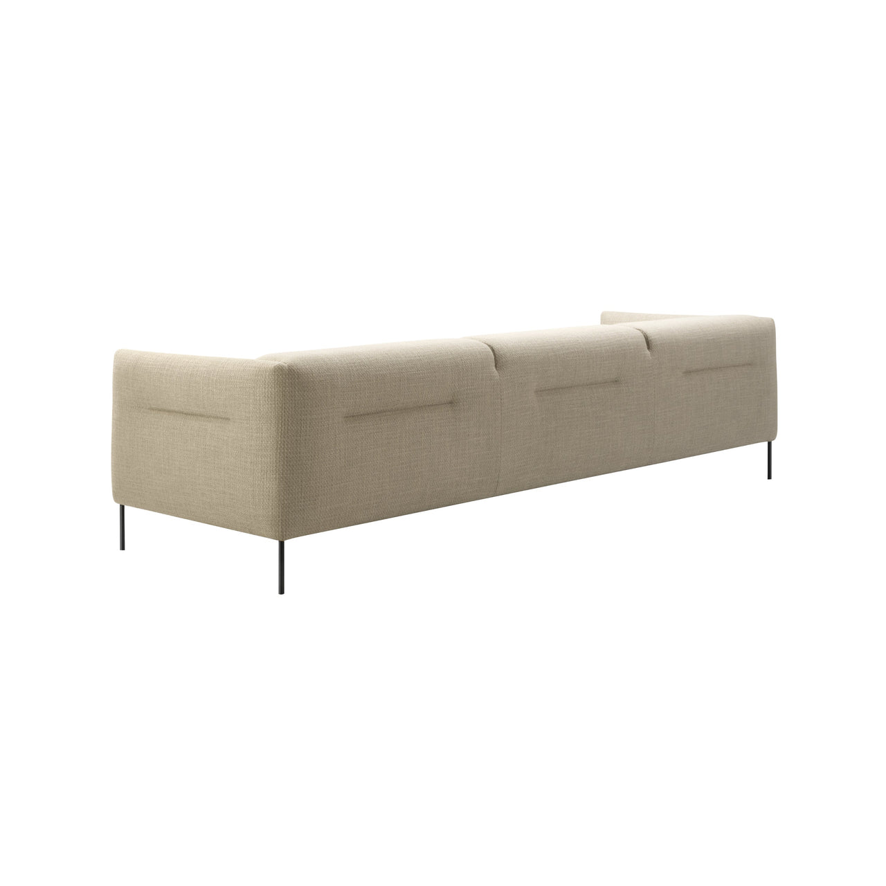 With Konami 3 Seater, much like its sister sofas, the sleek lines and subtle armrest curves — named for the Japanese words “ko” and “nami,” meaning “little wave” — lend a sculptural presence from any angle. English designer Damian Williamson essays a streamlined expanse, free of loose cushions or extraneous detail with precisely tailored upholstery in a curated selection of fabrics and realized by Fredericia’s master craftsmen. Structured with a wooden frame supported by a steel base and slim legs in either brushed stainless steel or black powder coat and plumped with cold-cured foam, the sofa ensures comfortable seating, conversing or reclining for hours on end.