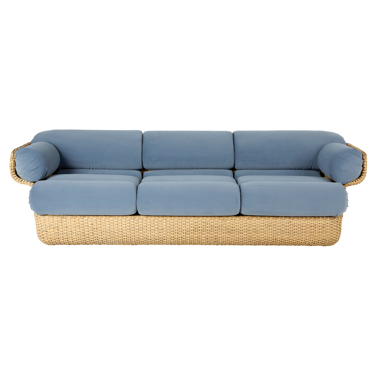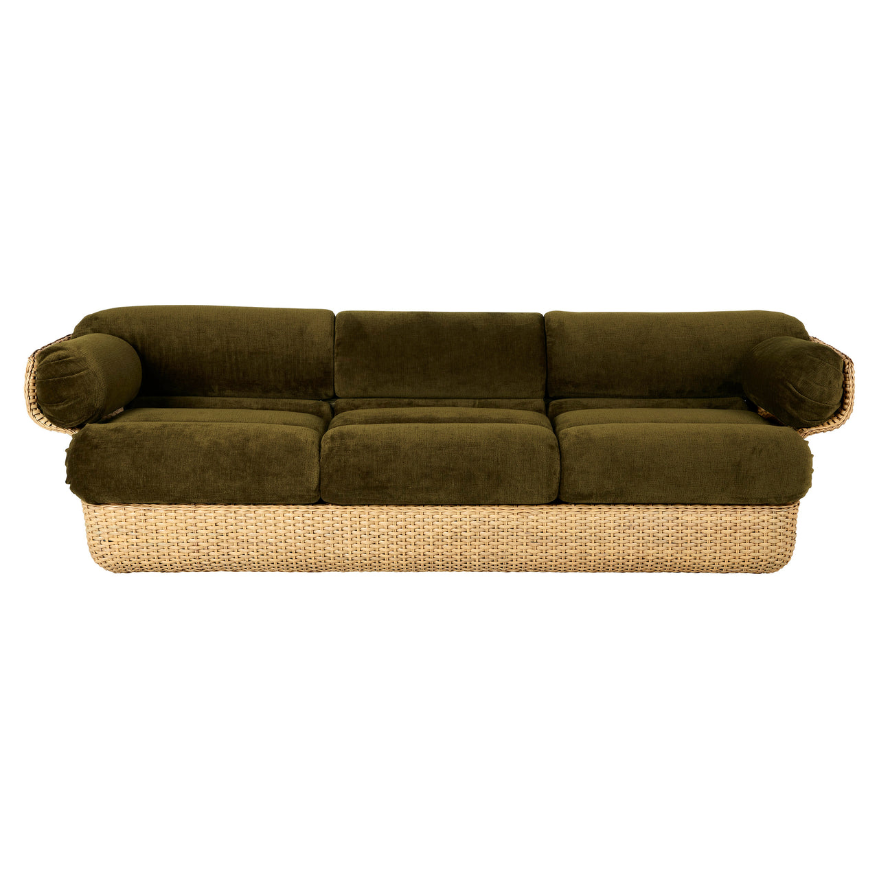 A spacious 3 seater fills out Gubi’s series first introduced by ‘60s Italian designer Joe Colombo in a turnabout from his futuristic plastic furniture. Basket retains his spirit of innovation but interpreted with an update on traditional hand-woven rattan and skillfully manipulated over the sofa structure made from environmentally responsible steel for strength and stability. Custom upholstery for the luxuriously deep cushions is available in a range of fine materials to complement the inviting sense of comfort.