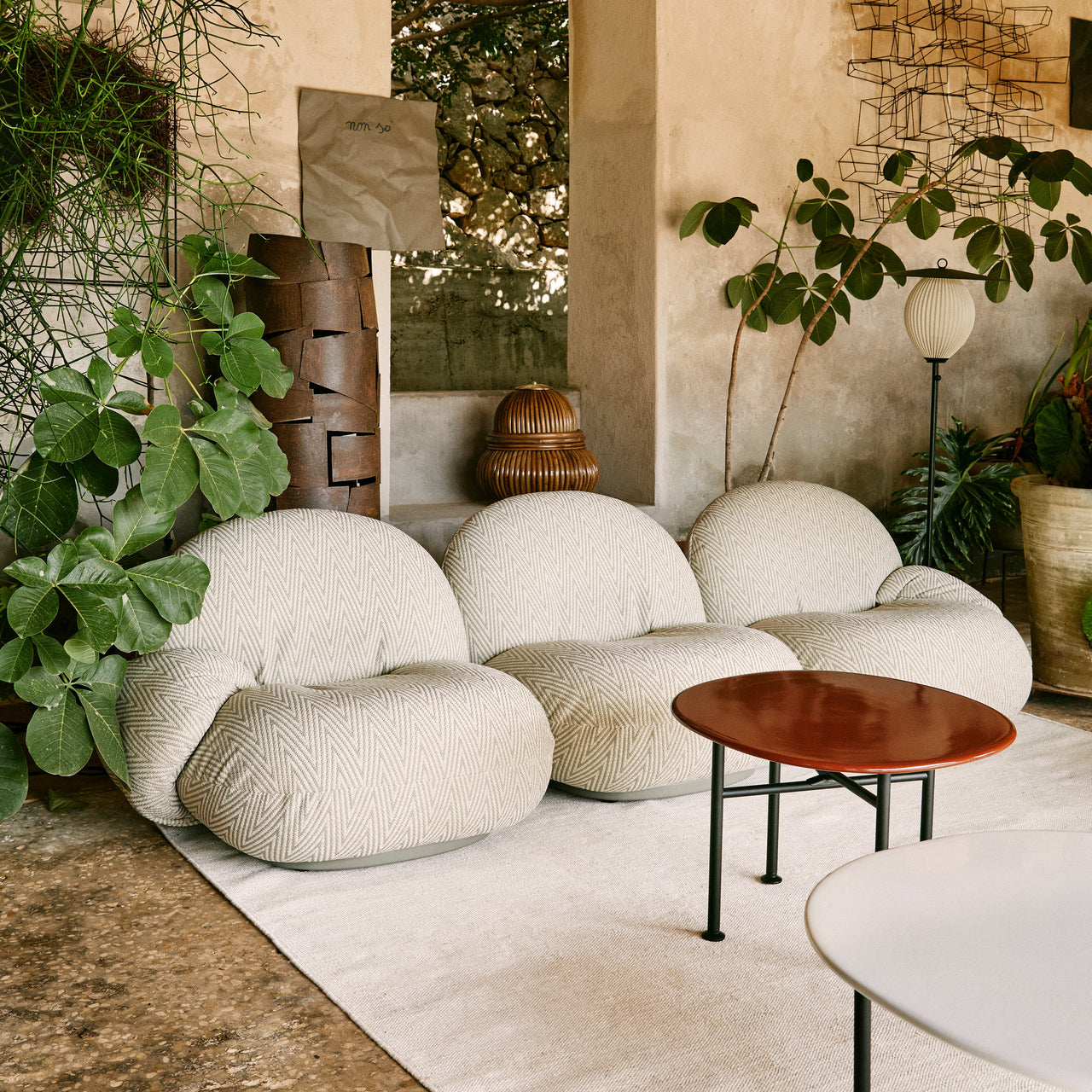 The Gubi Pacha Outdoor Sofa with Armrest and Ottoman blends sculptural elegance with modern durability. With its low-slung, cloud-like form, this outdoor version retains the original’s soft curves while incorporating weather-resistant materials. The sofa’s organic shape offers a relaxed seating experience, enhanced by integrated armrests for added support. The ottoman mirrors the contours of the sofa, functioning as a footrest or additional seat. Designed for the outdoors, it features a breathable, water-resistant membrane for quick drying, a moisture-resistant plywood base, and a removable rain cover for extra protection.