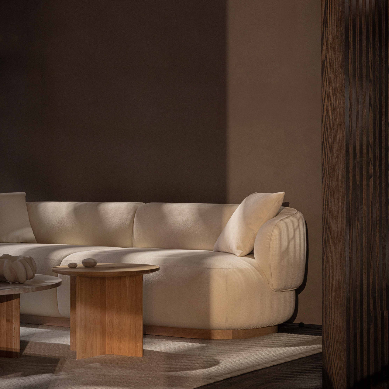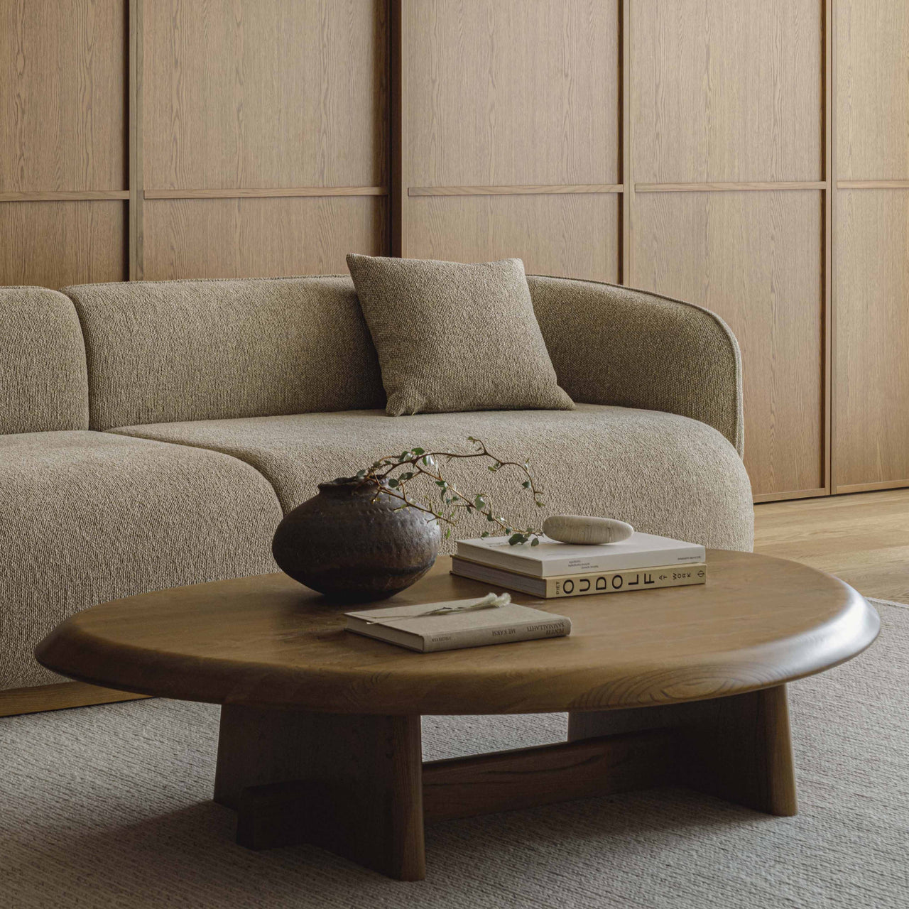 The Azabu Residence 3 Seater Sofa’s natural wood plinth creates a sensation akin to sitting on a smooth pebble, while the organic curves and substantial form provide a tranquil seating experience. Designed by Keiji Ashizawa, known for his "honest" design approach that maximizes material potential, this 3-seater offers a relaxing, enveloping, and spacious feel. The base is available in 4 oak finshes.
