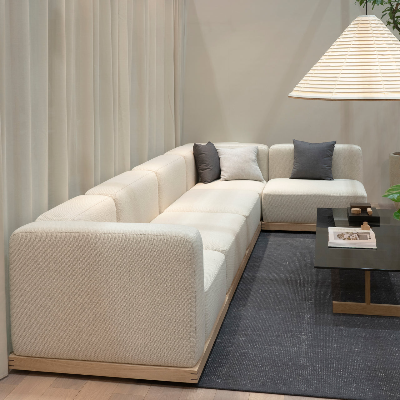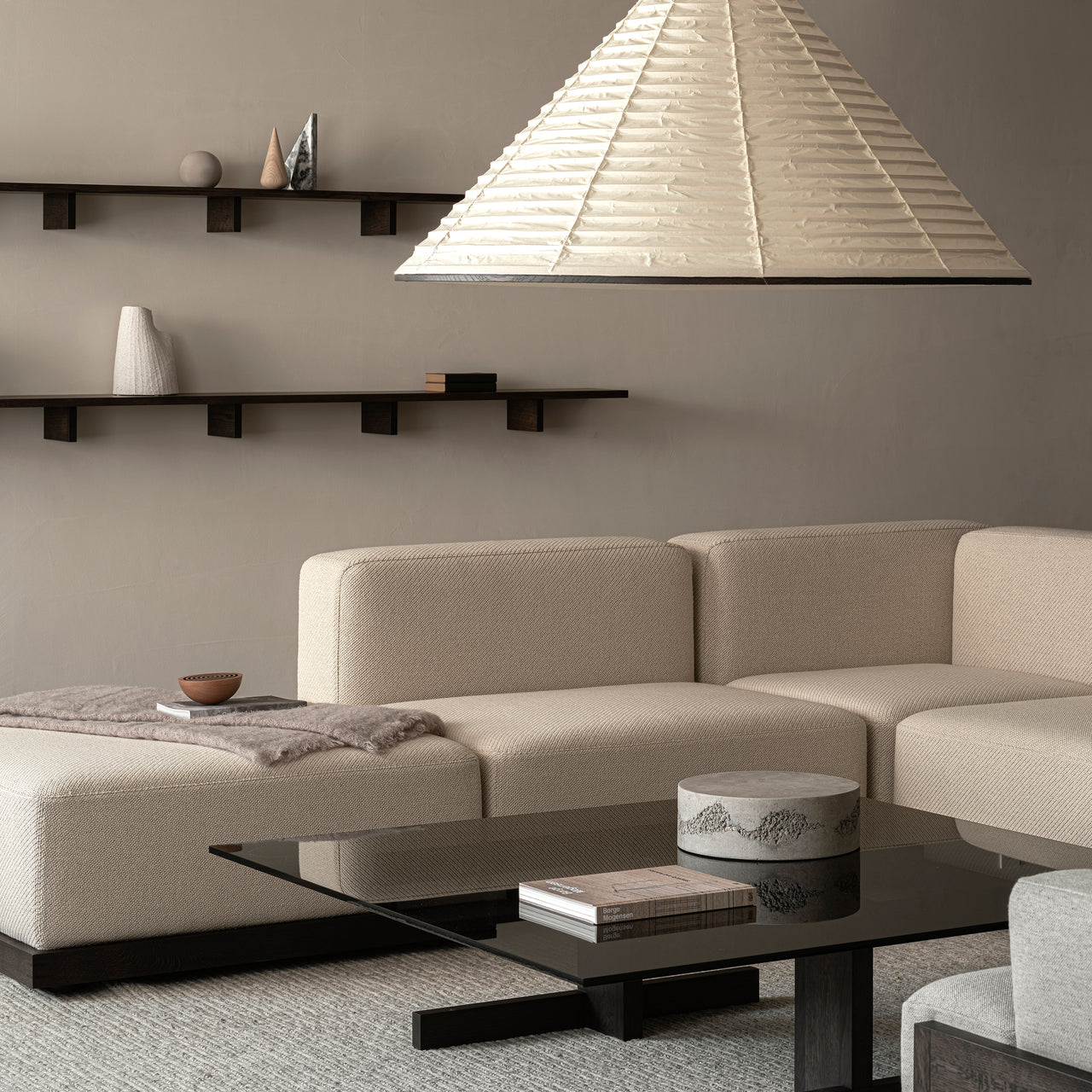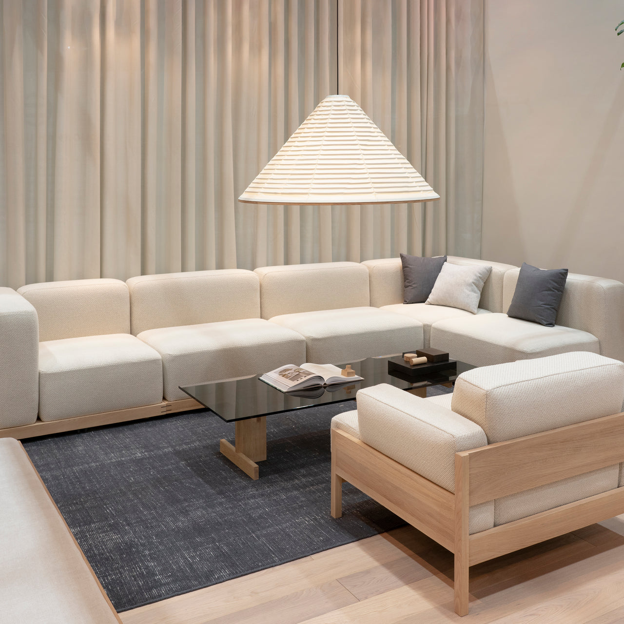 Norm Architects smartly accommodates all manner of seating configurations with its series of individual sofa modules for Karimoku Case. N-S02 is built with a solid oak base and soft upholstery, balancing the invitingly rounded cushions with the dark timber frame replete with exquisitely crafted joinery details. Small spline joints in each corner of the base tell a story of the traditional woodcraft heritage evident in Japanese culture and create a coherence across the collection’s left and right arm and armless sofa pieces and ottoman.
