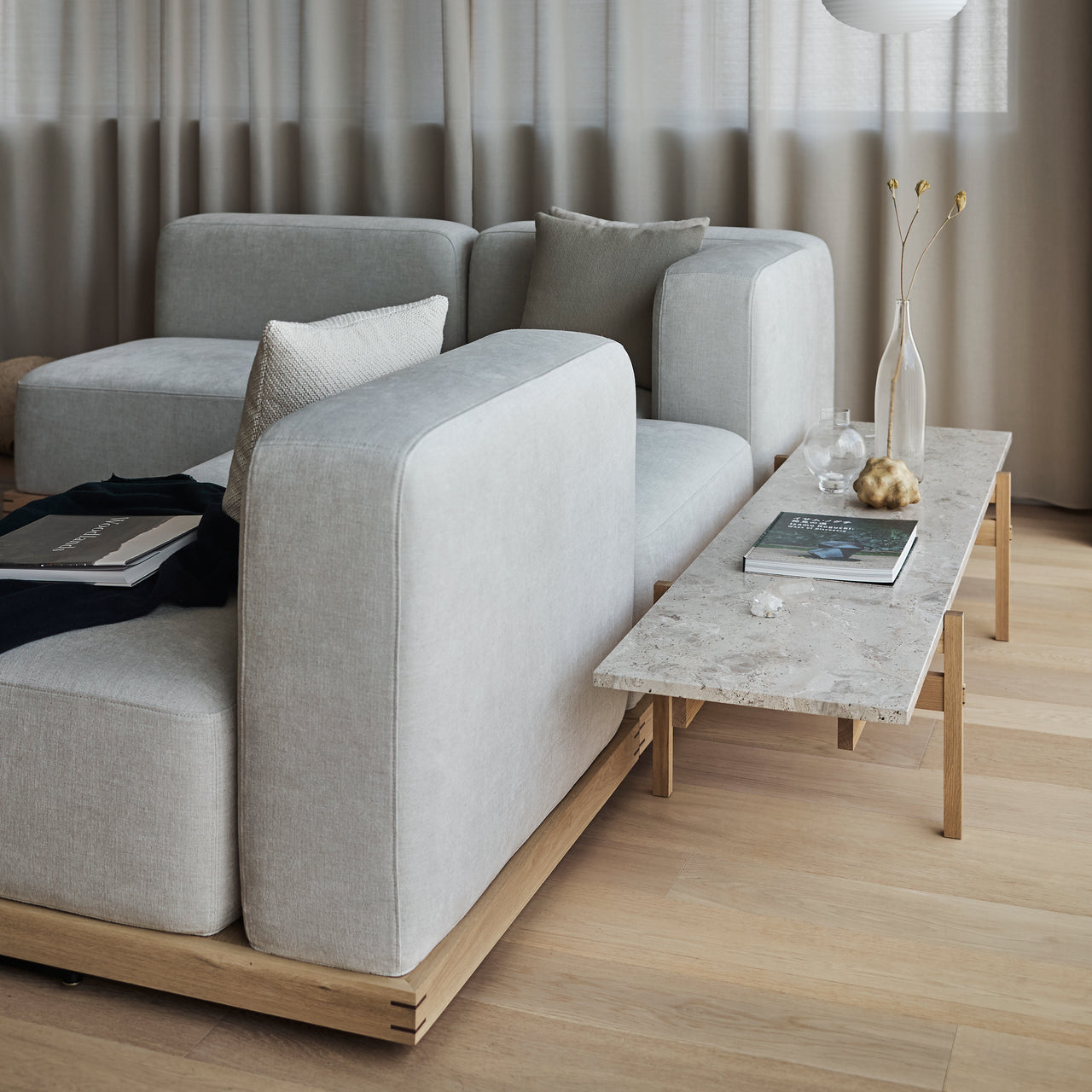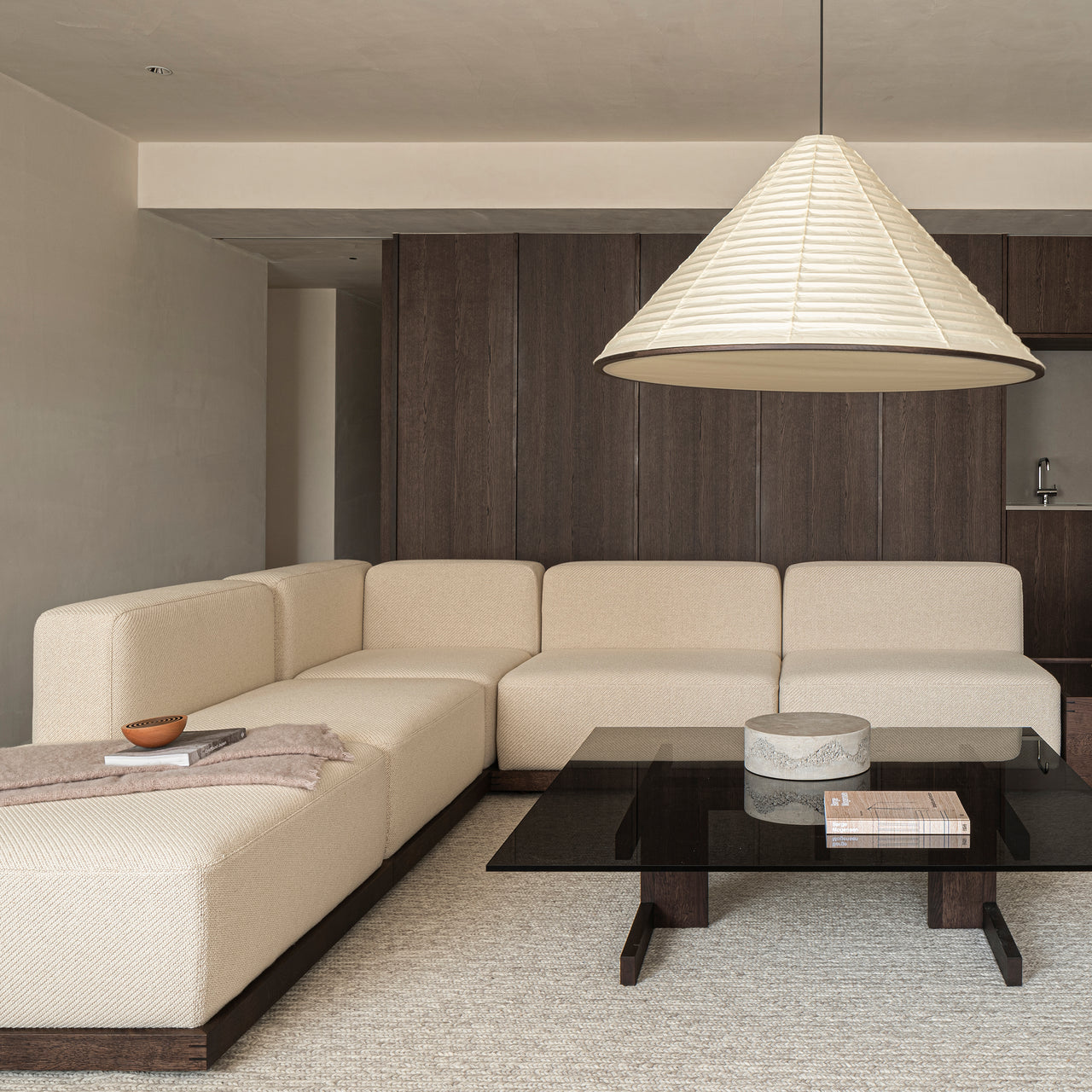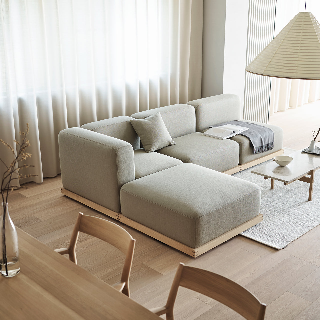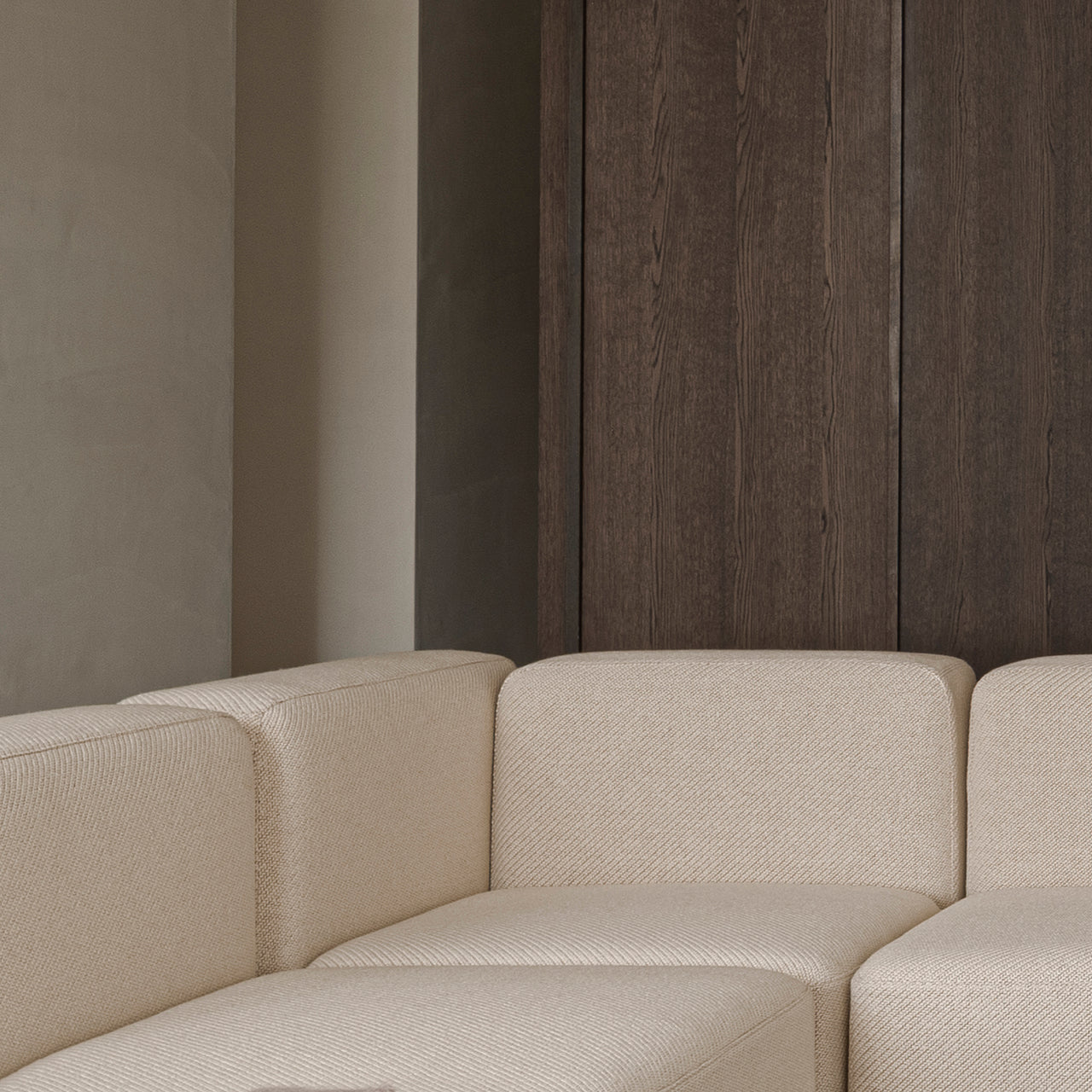 Norm Architects smartly accommodates all manner of seating configurations with its series of individual sofa modules for Karimoku Case. N-S02 is built with a solid oak base and soft upholstery, balancing the invitingly rounded cushions with the dark timber frame replete with exquisitely crafted joinery details. Small spline joints in each corner of the base tell a story of the traditional woodcraft heritage evident in Japanese culture and create a coherence across the collection’s left and right arm and armless sofa pieces and ottoman.