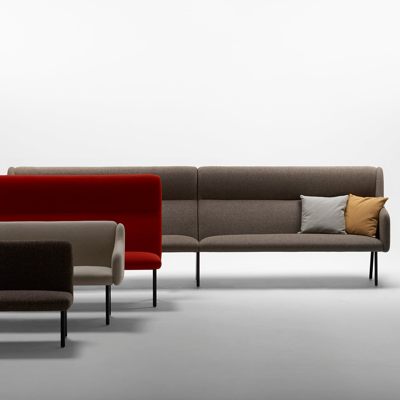 Anyway 2 Seater adapts the slim lines of its sister modular collection in a standalone sofa with a high contoured backrest. Carefully considered and scaled to smaller spaces, Massproductions offers the seating in a wide variety of premium upholstery options to suit both residential and contract environments. The sofa also offers a choice of selecting the exposed legs in a variety of finishes in either wood and metal to suit its surroundings.