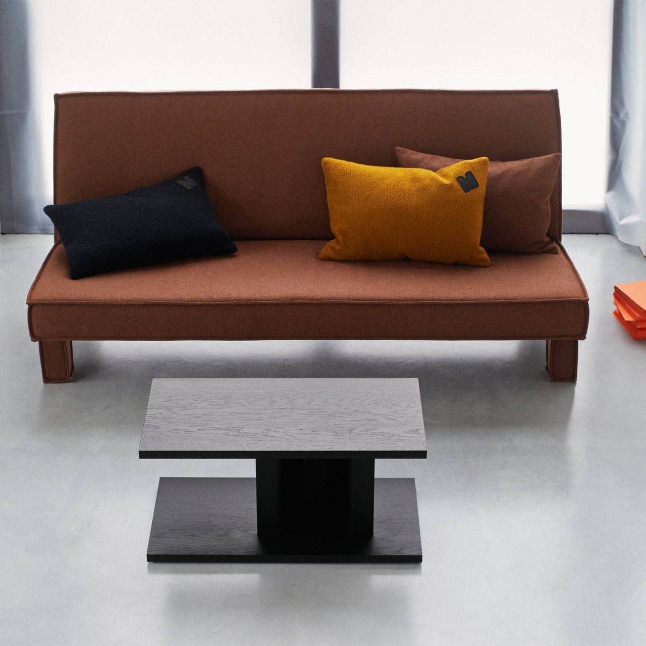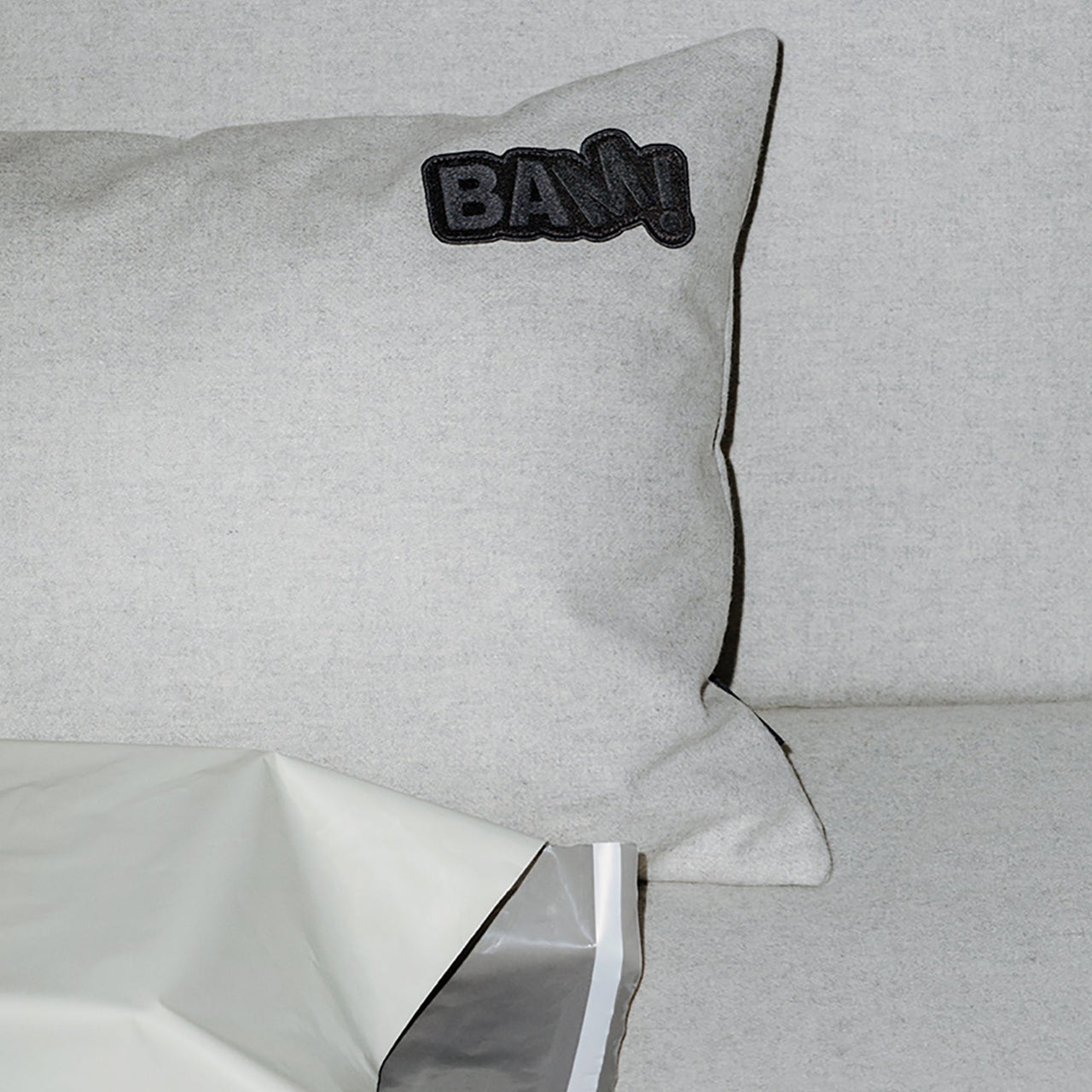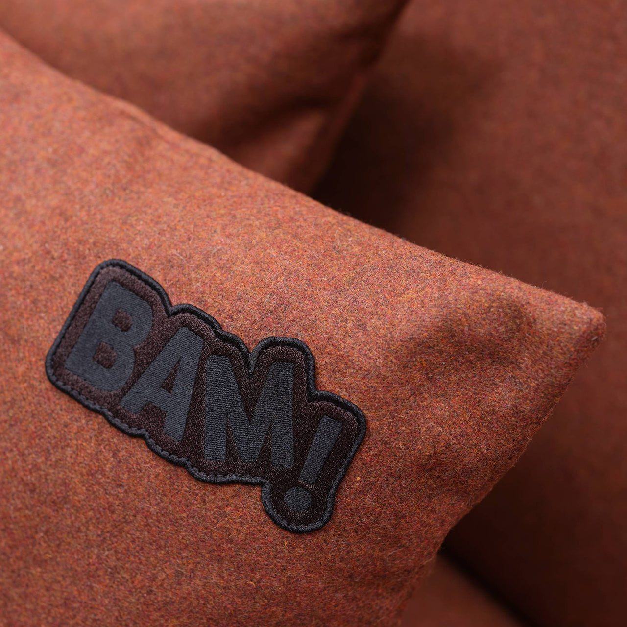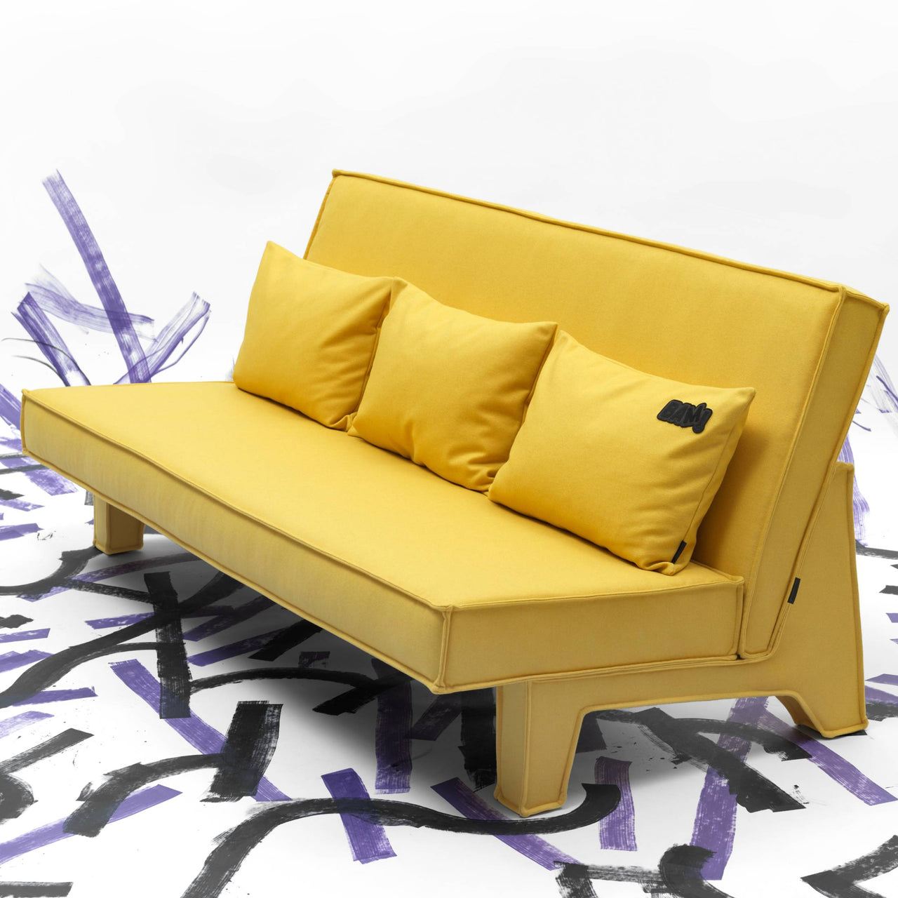 Just as the Pop movement stunned the art world, BAM! shakes up the idea of a sofa, here in a 3-seater version. Massproductions co-founder and chief designer Chris Martin plays up the geometry of block-shaped cushions for the armless seat and back, filled with recycled goose and duck feathers (sterilized via high temperature without chemicals). Buttress-like legs come upholstered in the same material and one of the back cushions sports a black embroidered logo patch, a nod to American artist Roy Lichenstein. BAM! is delivered in eco-smart flat packaging and easily assembled with few components.