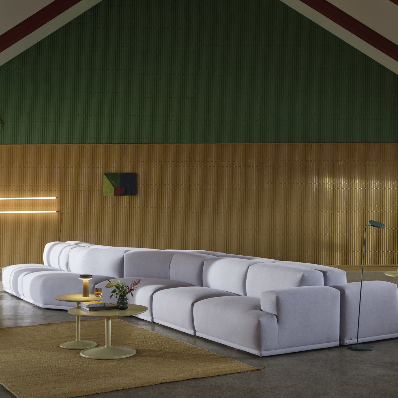 Only Connect! Muuto's Back-To-Back modular series from go-to design studio Anderssen & Voll offers complete freedom to devise a sofa configuration for any imaginable interior. The Back-To-Back configuration is perfect for open spaces, allowing users to create distinct zones for relaxation or conversation. With 14 different modules to fit various spaces and design needs, the combinations are virtually limitless (as well as easily re-arranged with its metal-joint system). Upholstered in a range of high-performance fabrics over precisely shaped cold foam for exceptional comfort, with sturdy wood-frame construction.