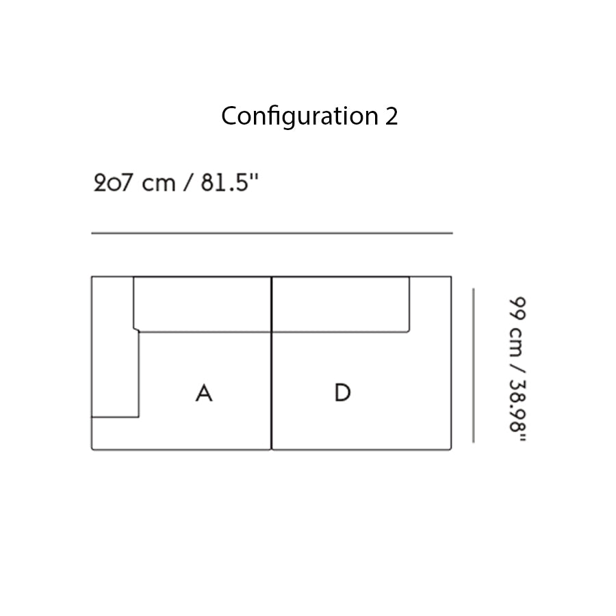 - Configuration 1 & 2: 27.2" h x 81.5" w x 39" d (69x207x99cm)