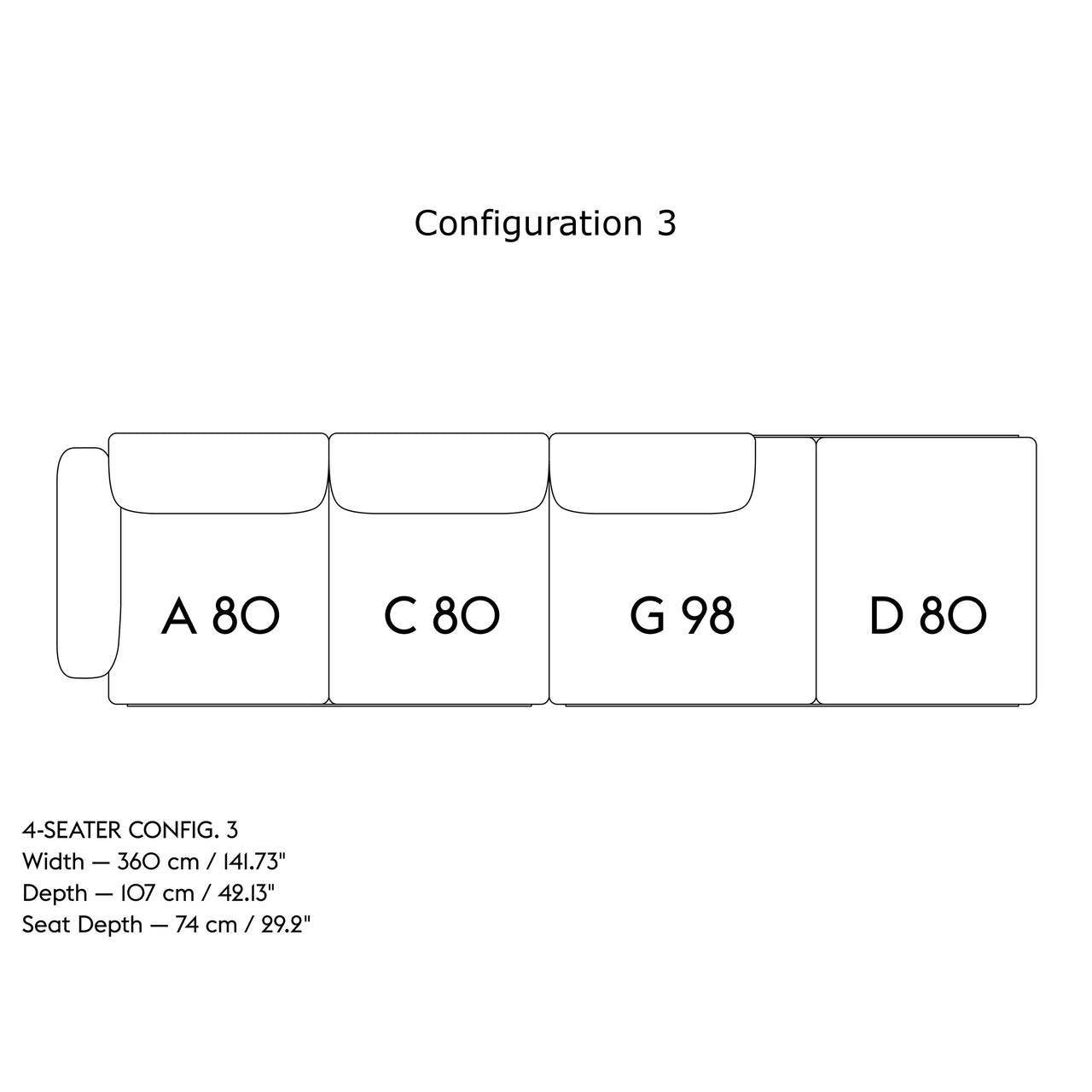 - Configuration: 1 - 3: 27.6" h x 141.7" w x 42.1" d (70x360x107cm)