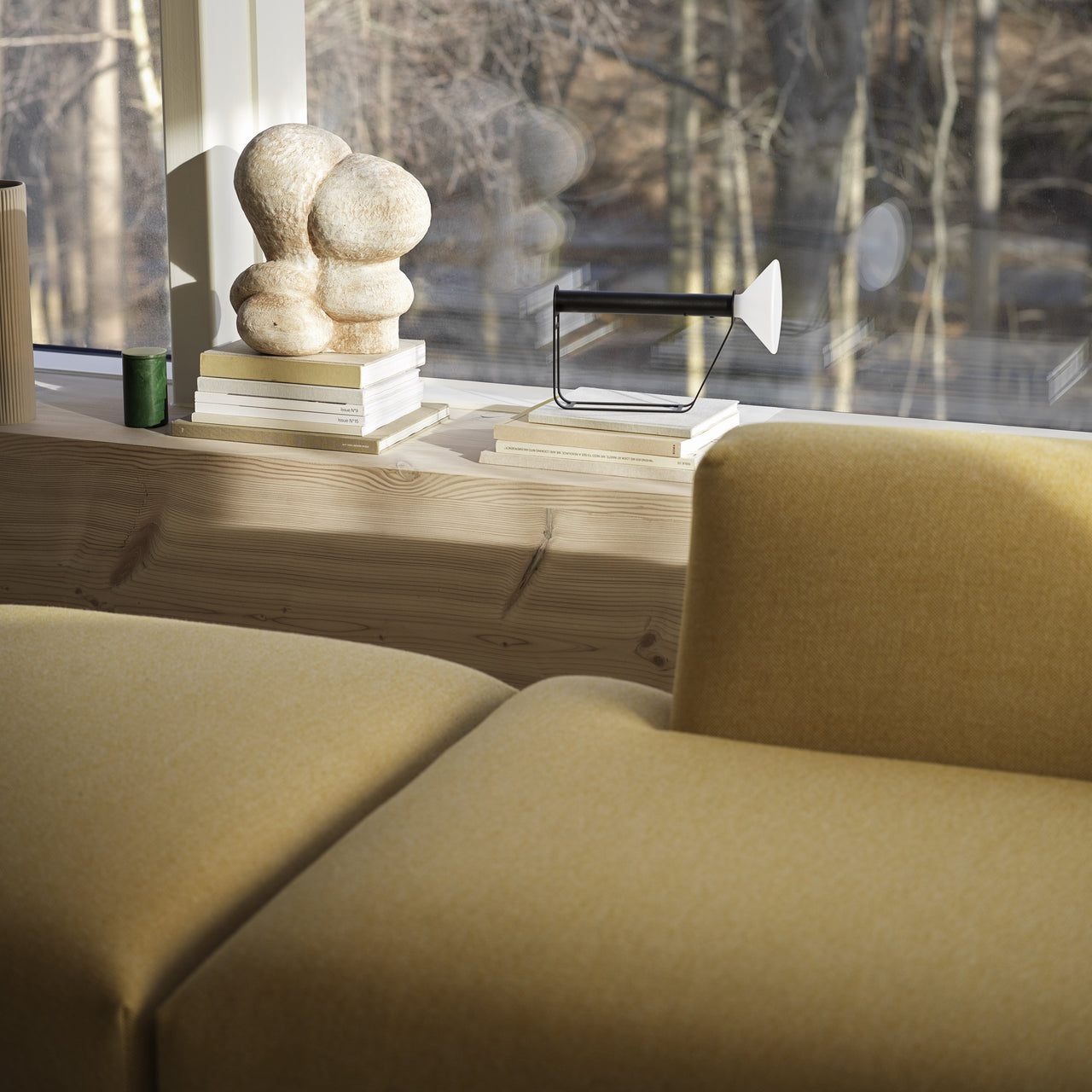 With In Situ, designers Anderssen & Voll say they meld "the grandeur of traditional Italian sofas with the refined simplicity of Scandinavian design." Working with Copenhagen brand Muuto, the Norwegian studio arrived at a distinctive modular scheme, with 30 prearranged configurations based on the different seating styles and loose cushions. A powder-coated steel frame runs along the seat and back of the sofa and visually unifies the separate units. In Situ's crisp profile and deeply comfortable proportions are realized with wood construction and foam, wadding and fiberball fill.