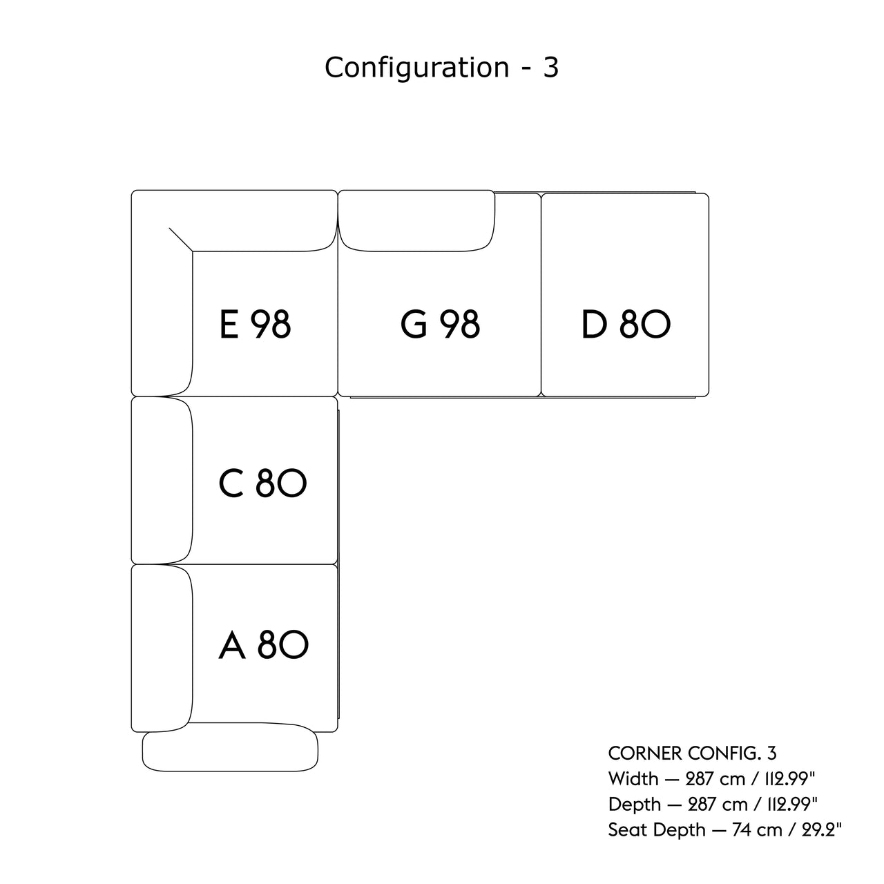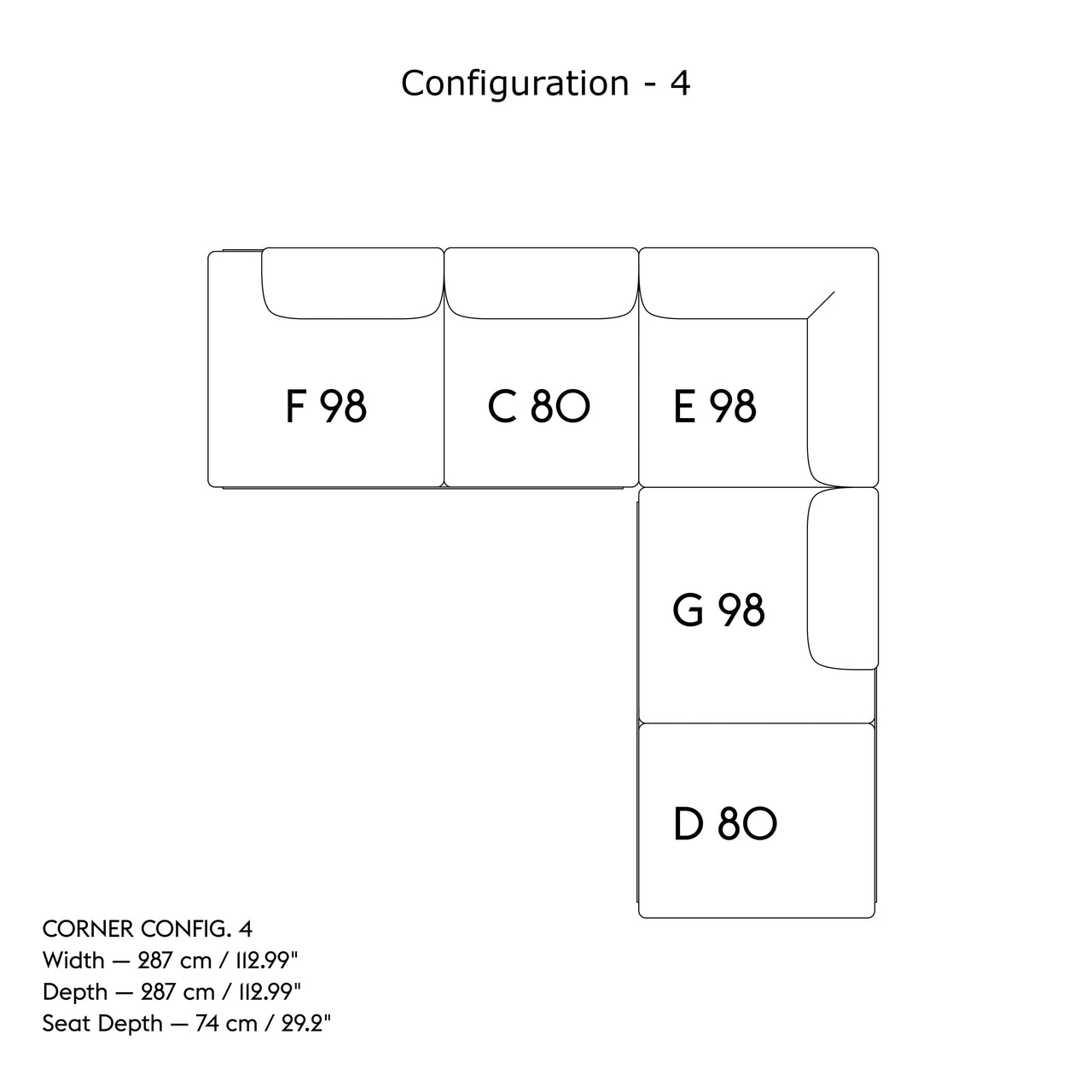 - Corner: 27.6" h x 42.1" w x 42.1" d (70x107x107cm)