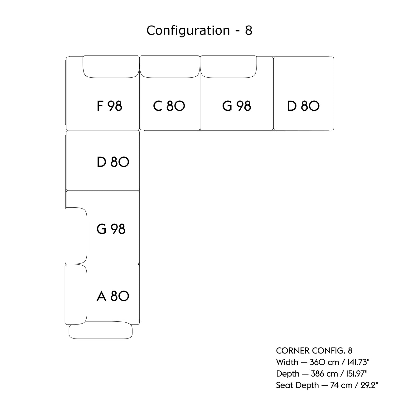 - Configuration: 8: 27.6" h x 141.7" w x 152" d (70x360x386cm)