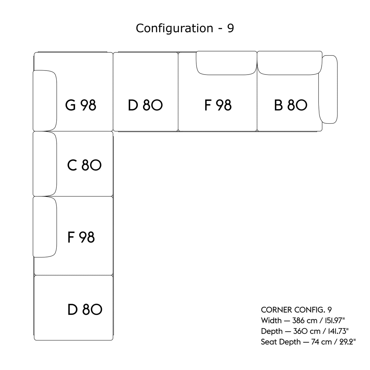 - Configuration: 9: 27.6" h x 152" w x 141.7" d (70x386x360cm)