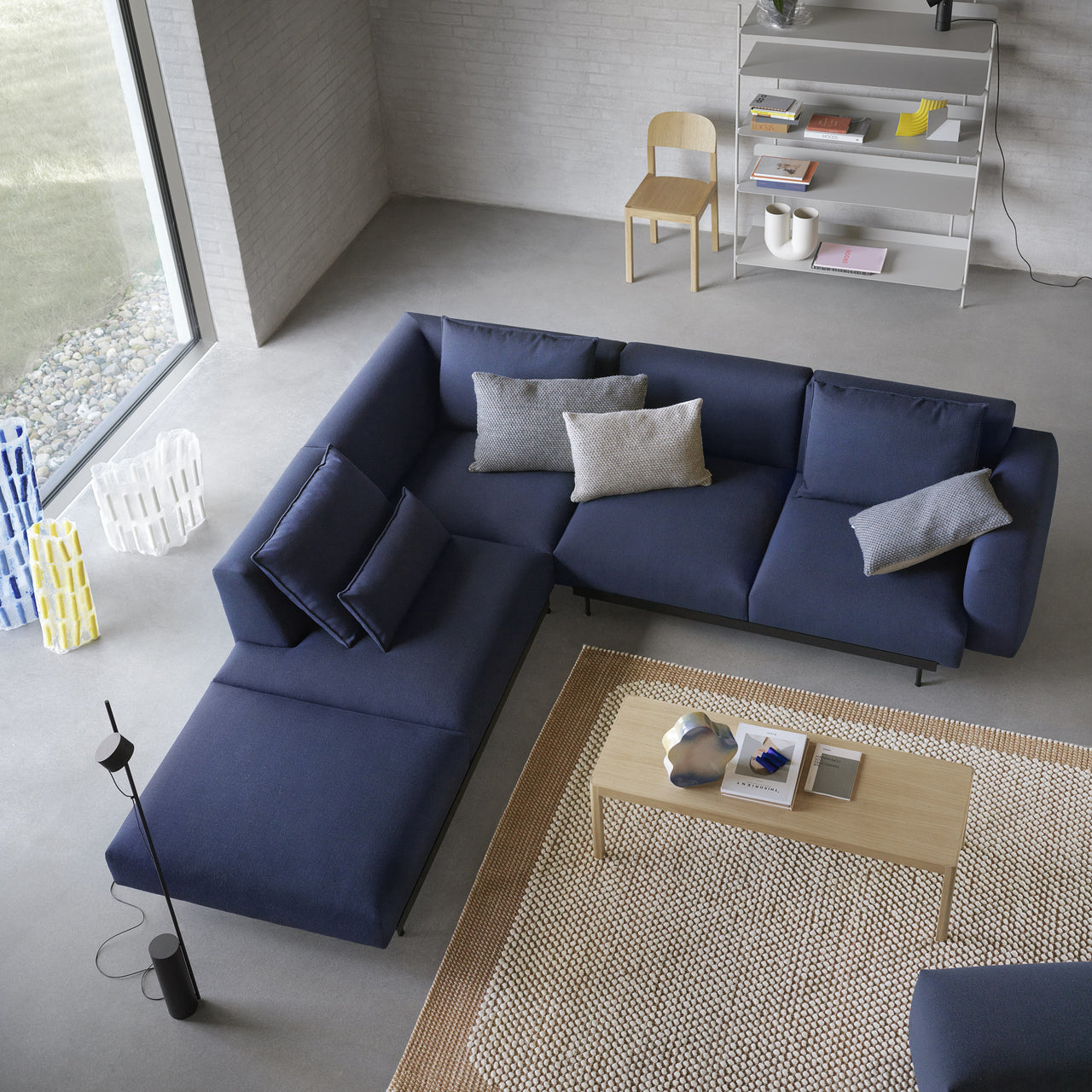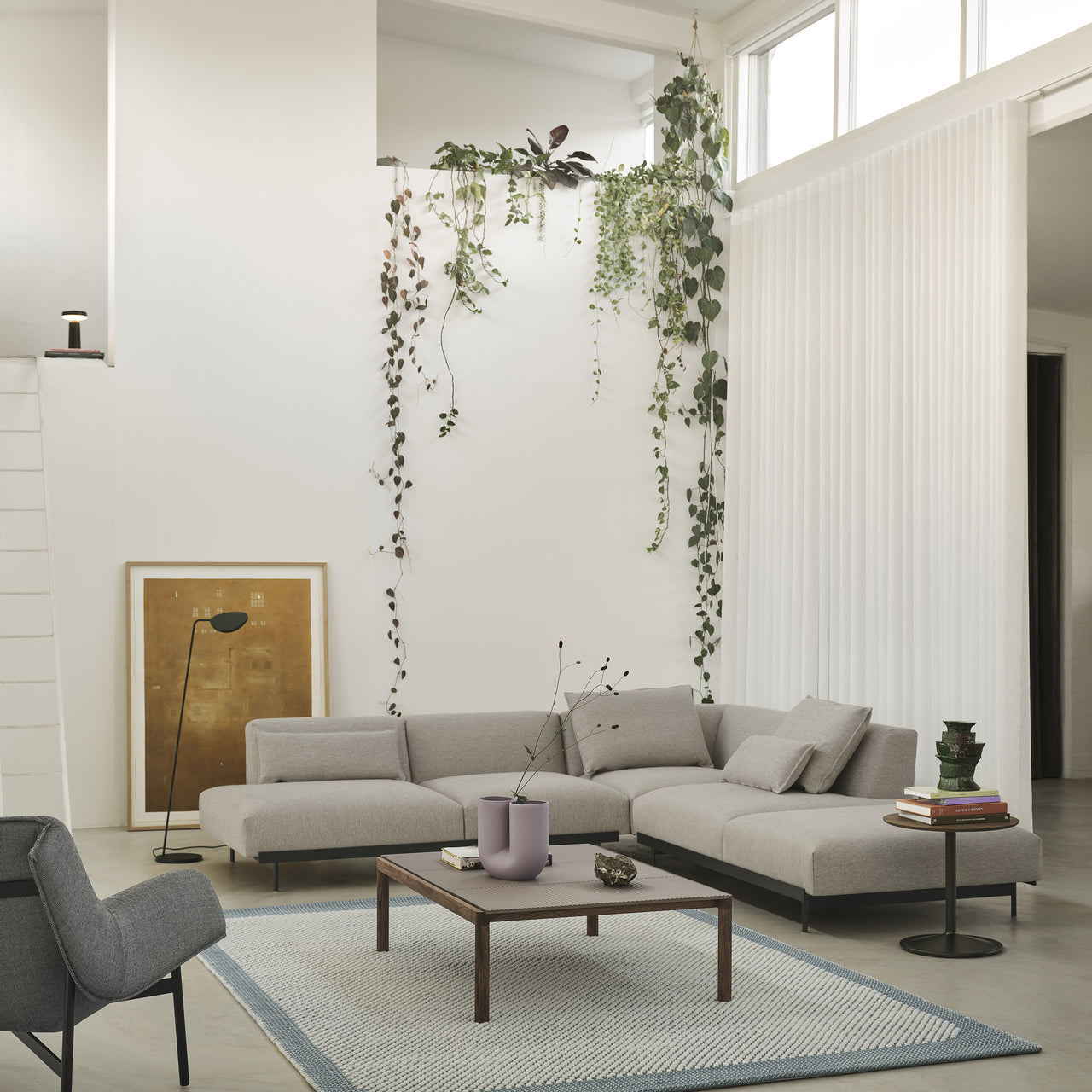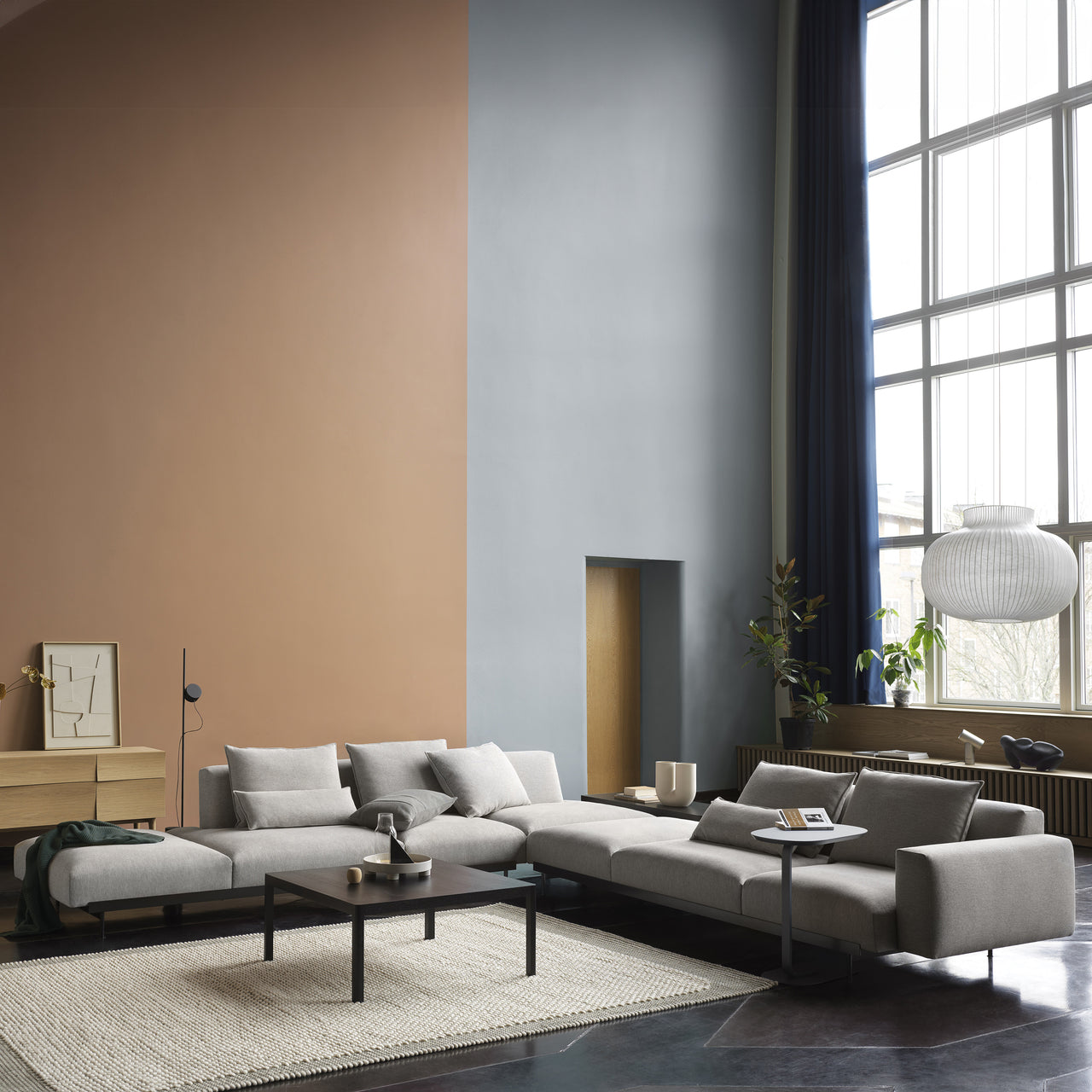 With In Situ, designers Anderssen & Voll say they meld "the grandeur of traditional Italian sofas with the refined simplicity of Scandinavian design." Working with Copenhagen brand Muuto, the Norwegian studio arrived at a distinctive modular scheme, with 30 prearranged configurations based on the different seating styles and loose cushions. A powder-coated steel frame runs along the seat and back of the sofa and visually unifies the separate units. In Situ's crisp profile and deeply comfortable proportions are realized with wood construction and foam, wadding and fiberball fill.