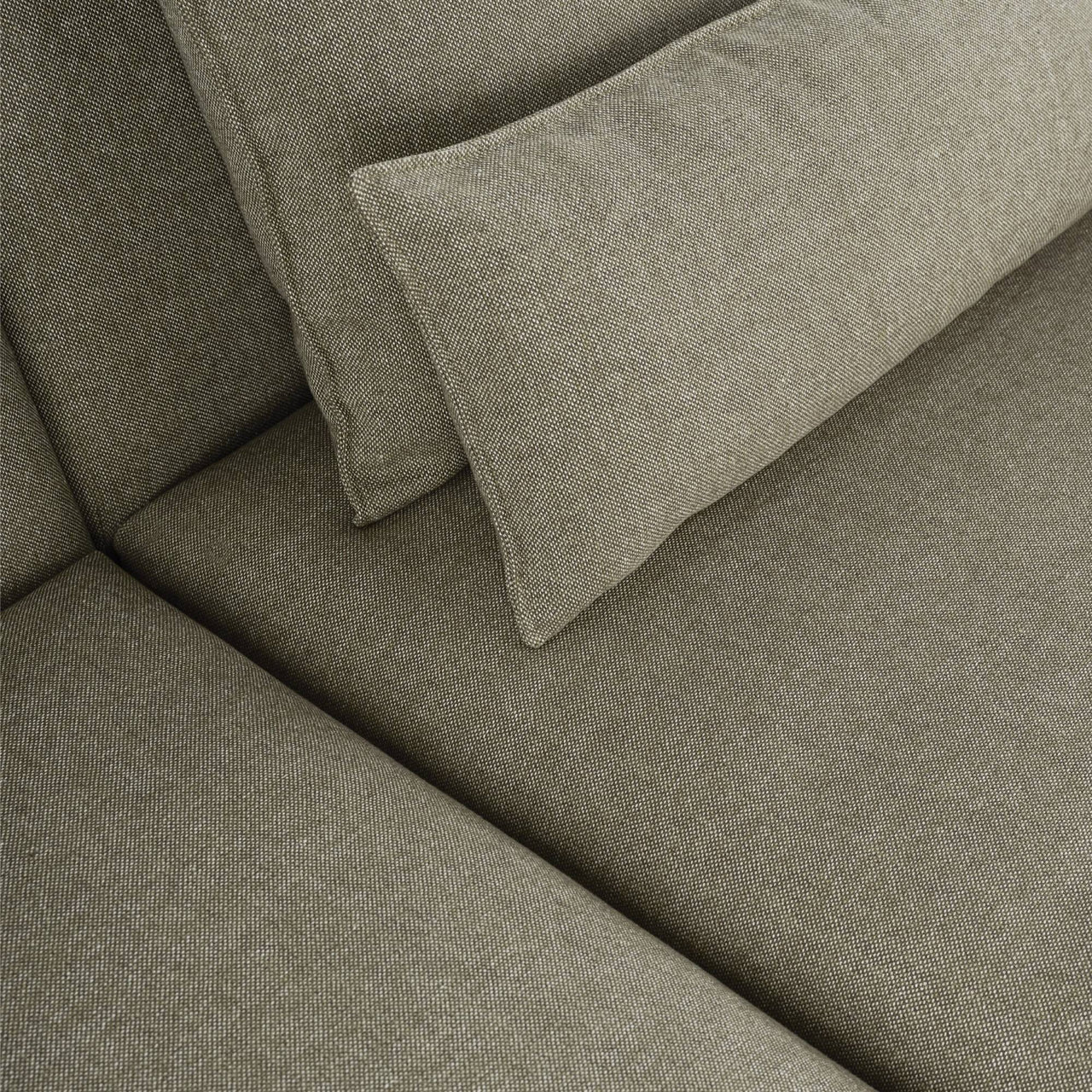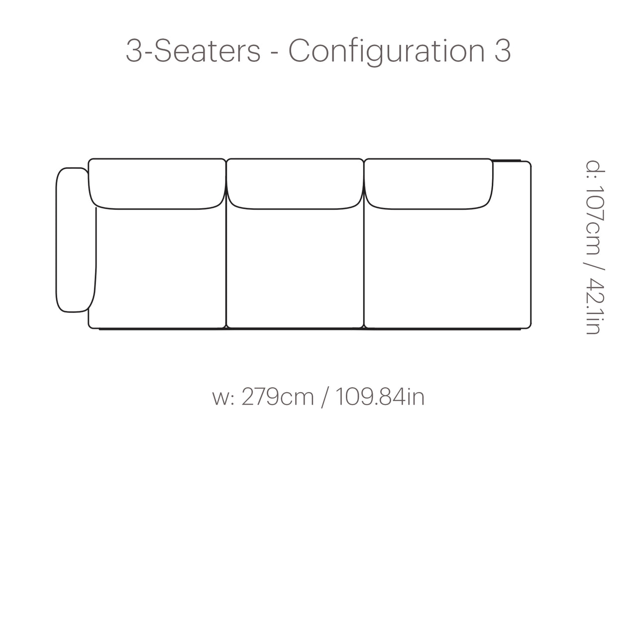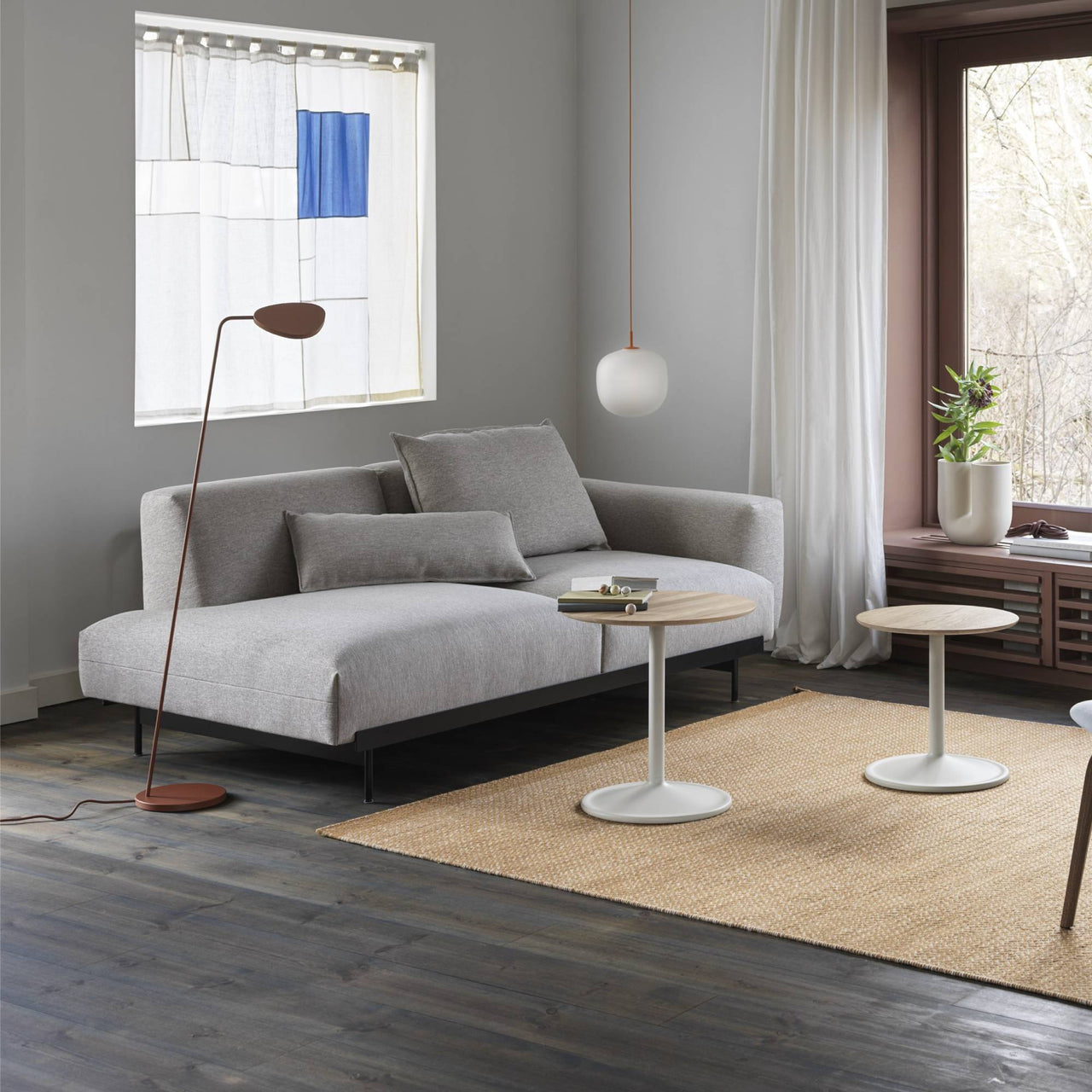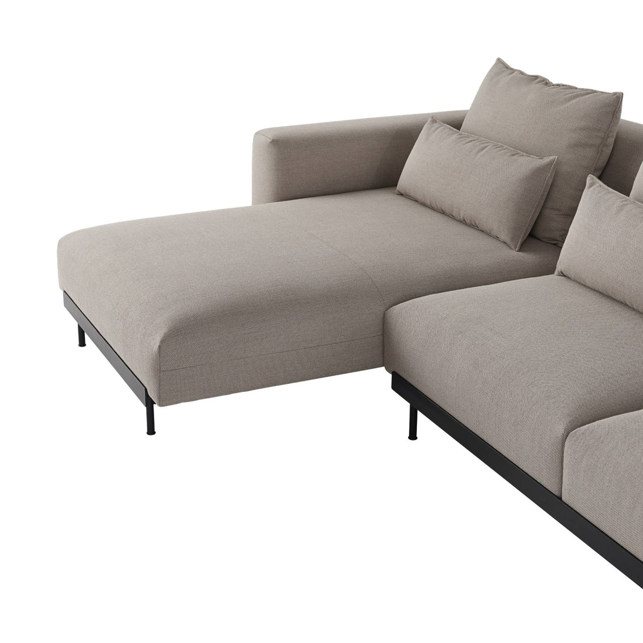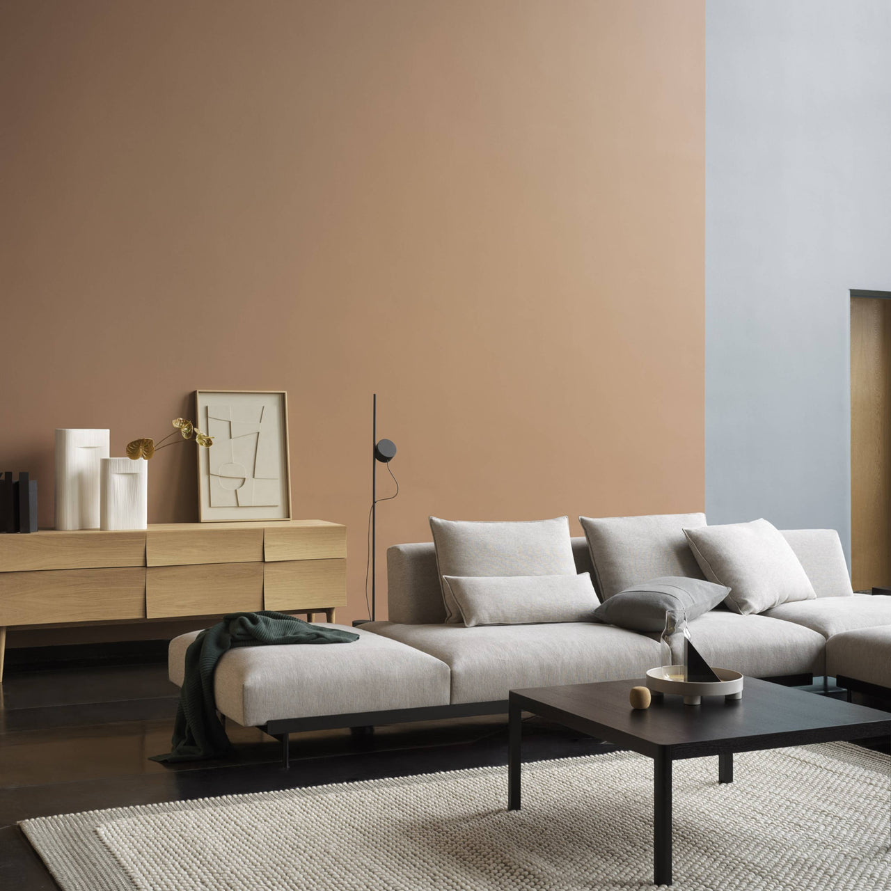 With In Situ, designers Anderssen & Voll say they meld "the grandeur of traditional Italian sofas with the refined simplicity of Scandinavian design." Working with Copenhagen brand Muuto, the Norwegian studio arrived at a distinctive modular scheme, with 30 prearranged configurations based on the 9 different seating styles and 2 loose cushions. A powder-coated steel frame runs along the seat and back of the sofa and visually unifies the separate units. In Situ's crisp profile and deeply comfortable proportions are realized with wood construction and foam, wadding and fiberball fill.