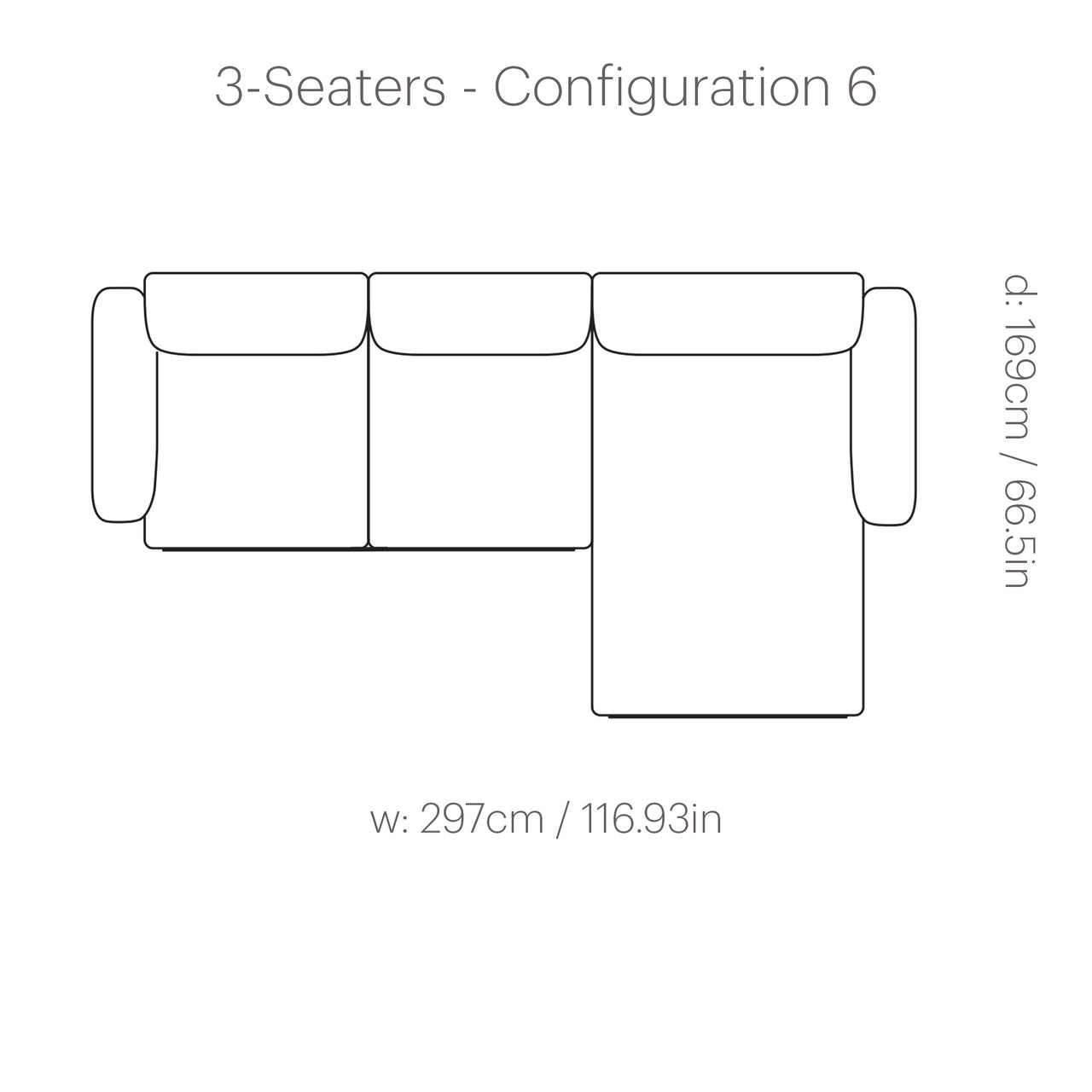 - Configuration 6 - 7: 27.6" h x 144.9" w x 113" d (70x368x287cm)